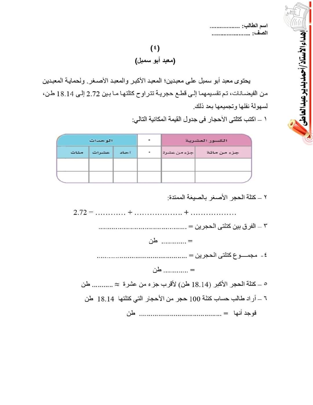 تحميل نماذج الوزارة الرسمية مهام ادائية رياضيات الصف الخامس الابتدائي الترم الاول 2023 مع الحل