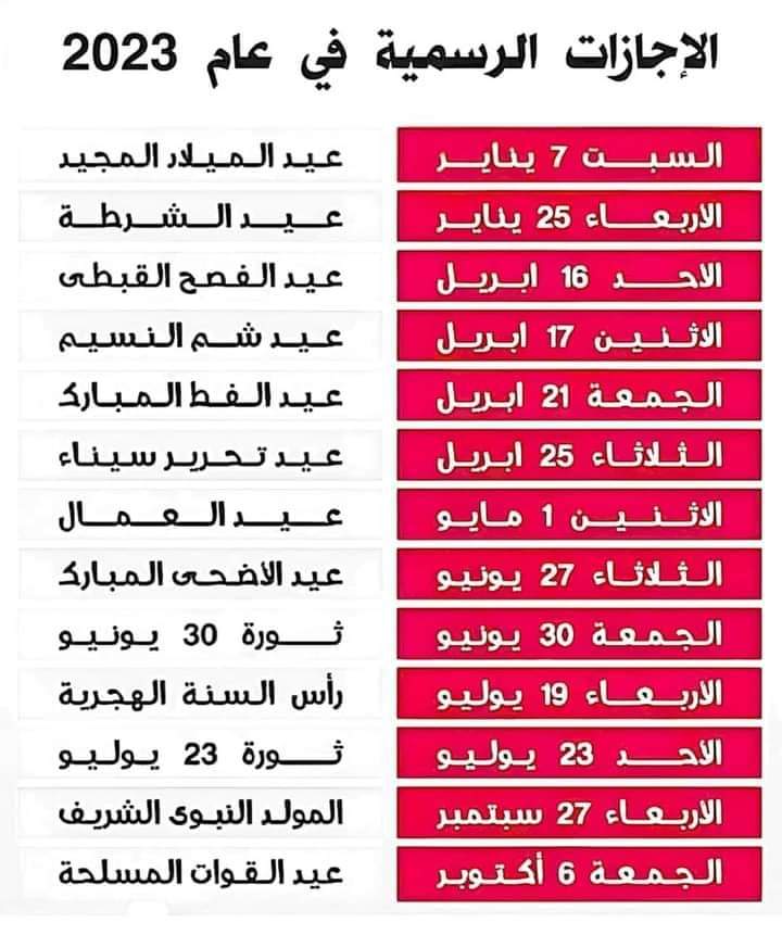 الاجازات الرسمية في العام الدراسي الجديد 2023
