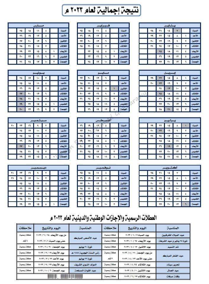 تحميل نتيجة 2023 الجديدة و الإجازات و التقويم الهجري المقابل