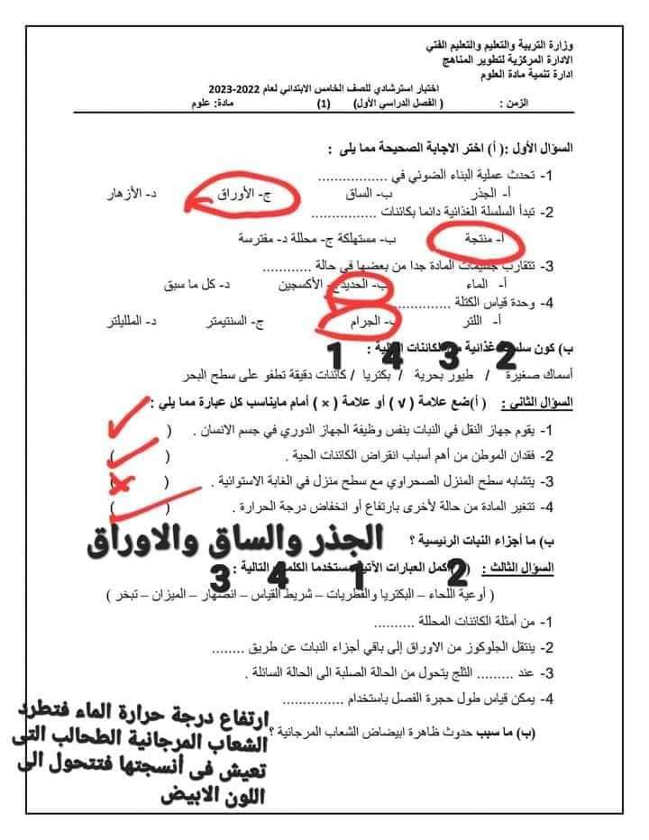 تحميل اجابات نماذج الوزارة الاسترشادية علوم وساينس الصف الخامس الابتدائي الترم الاول 2023