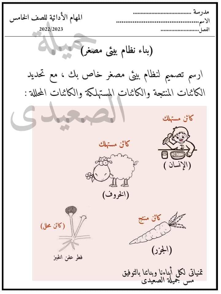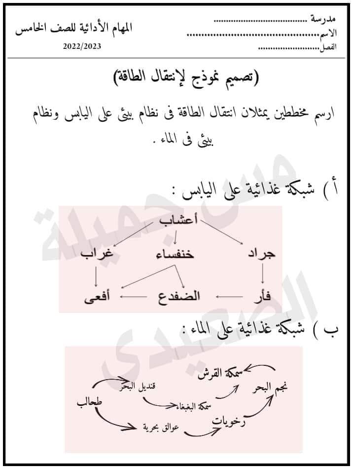 المهام الادائية الرسمية علوم الوحدة الاولى فقط باقي مهام الوحدة الثانية الصف الخامس الترم الاول