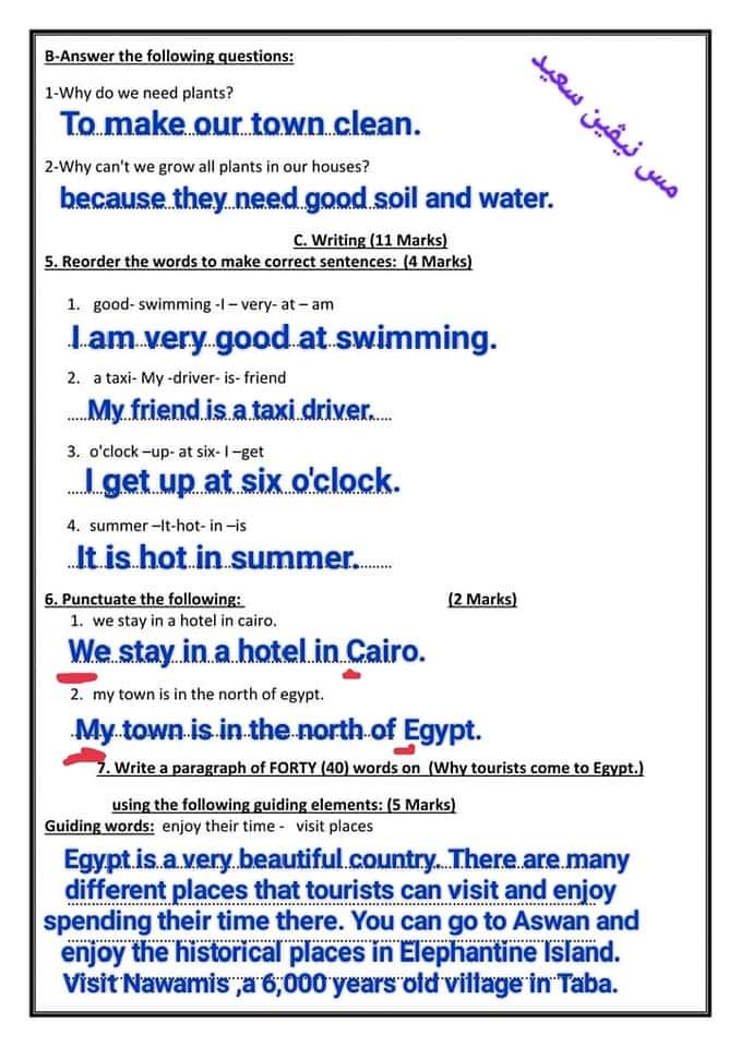 الاجابات من ميس نيفين سعيد جزاها الله خيرا على جهدها المبذول وجعله الله في ميزان حسناتها
