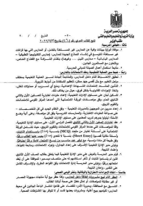 الكتاب الدوري رقم ٤٩ بشأن ضوابط وتعليمات امتحانات الصفين الأول والثاني الثانوي