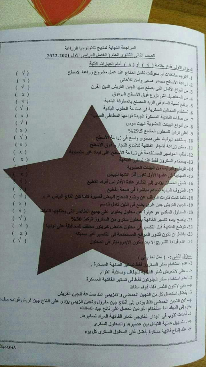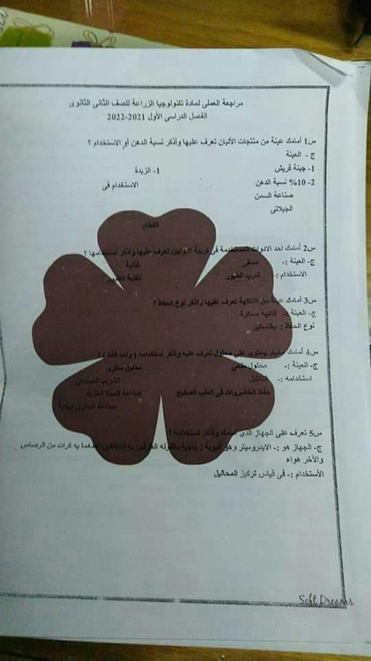 تحميل المراجعة النهائية تكنولوجيا الزراعة الصف الثاني الثانوي الترم الاول 2023