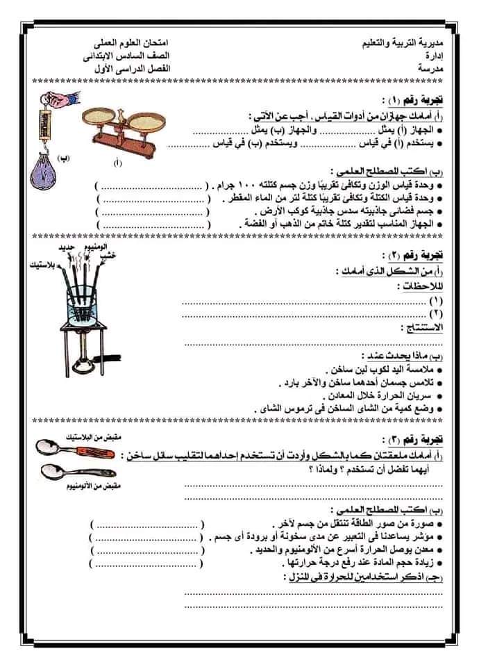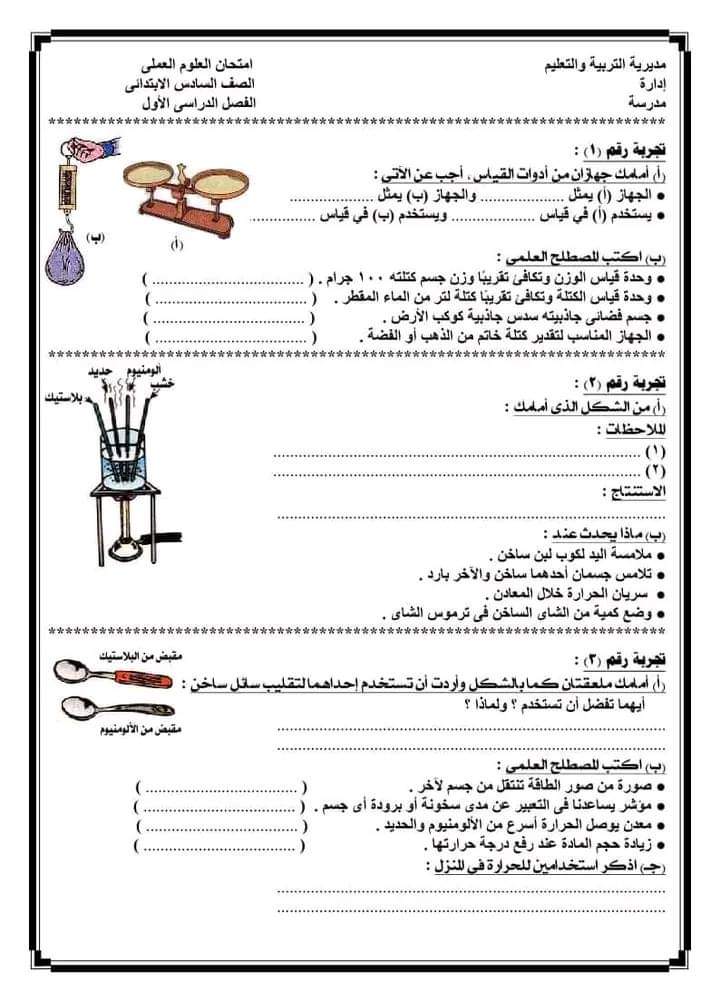 تحميل امتحانات عملي مادة العلوم الصف السادس الابتدائى الترم الاول 2023 لميس جميلة الصعيدي