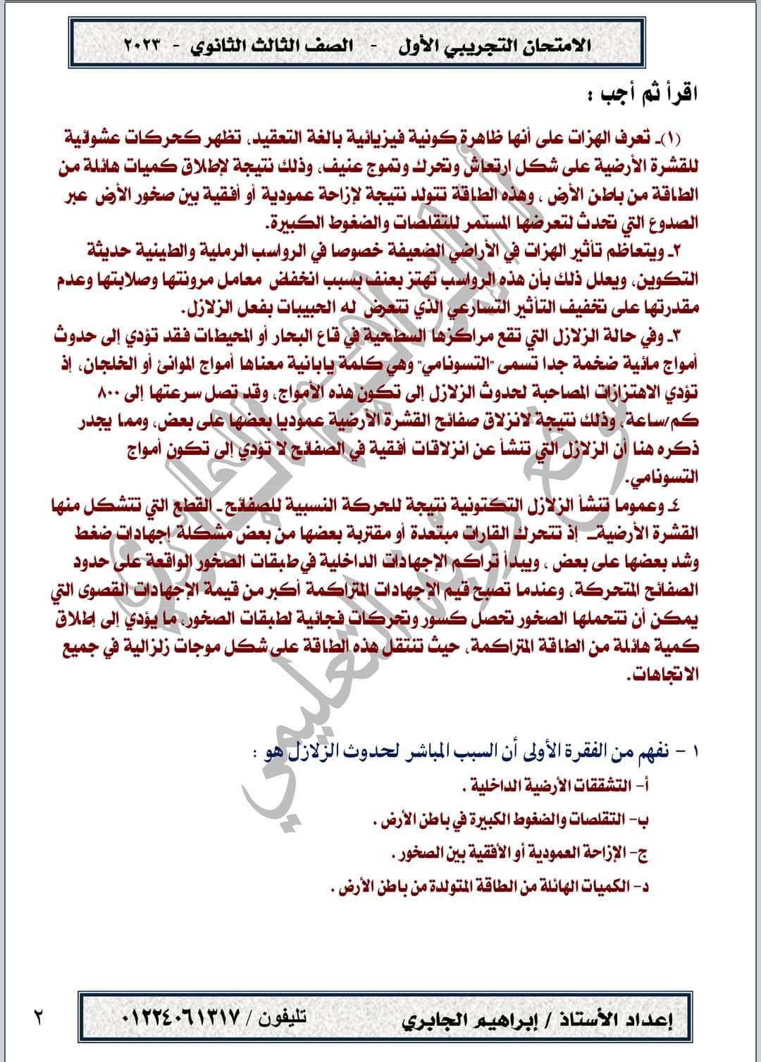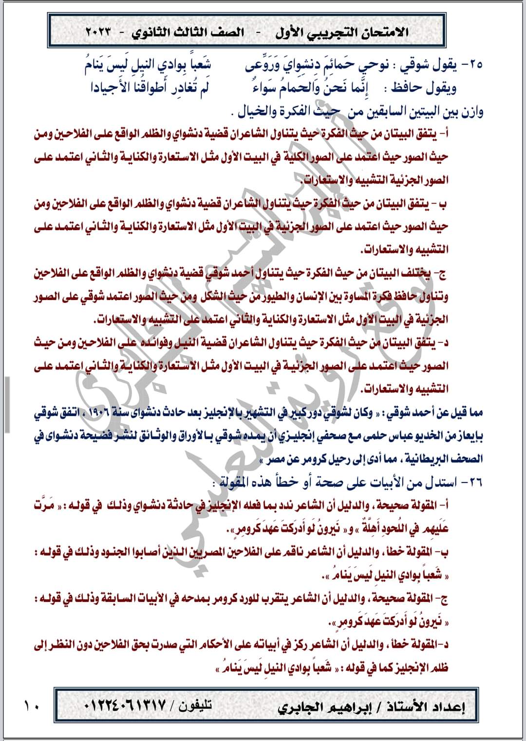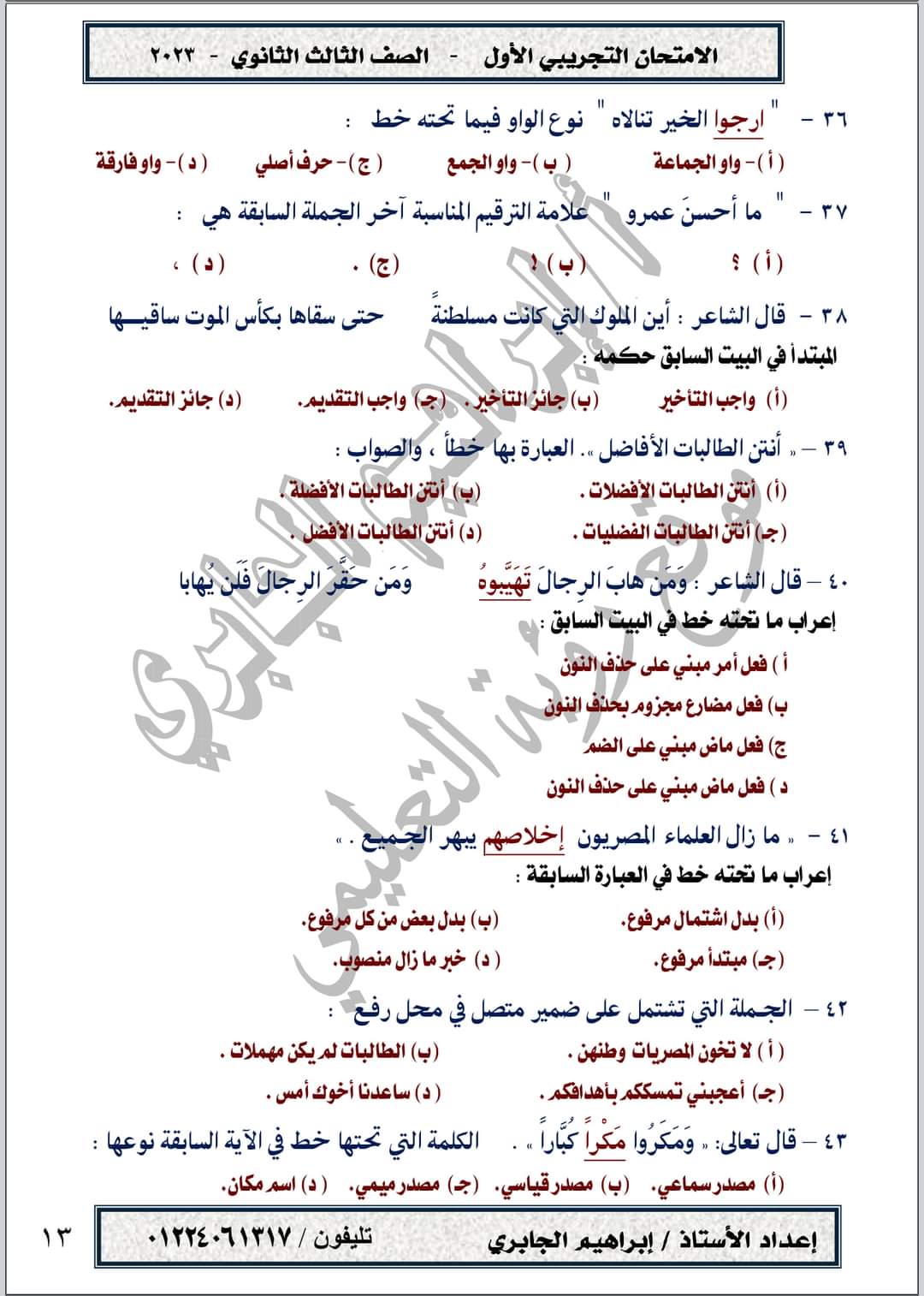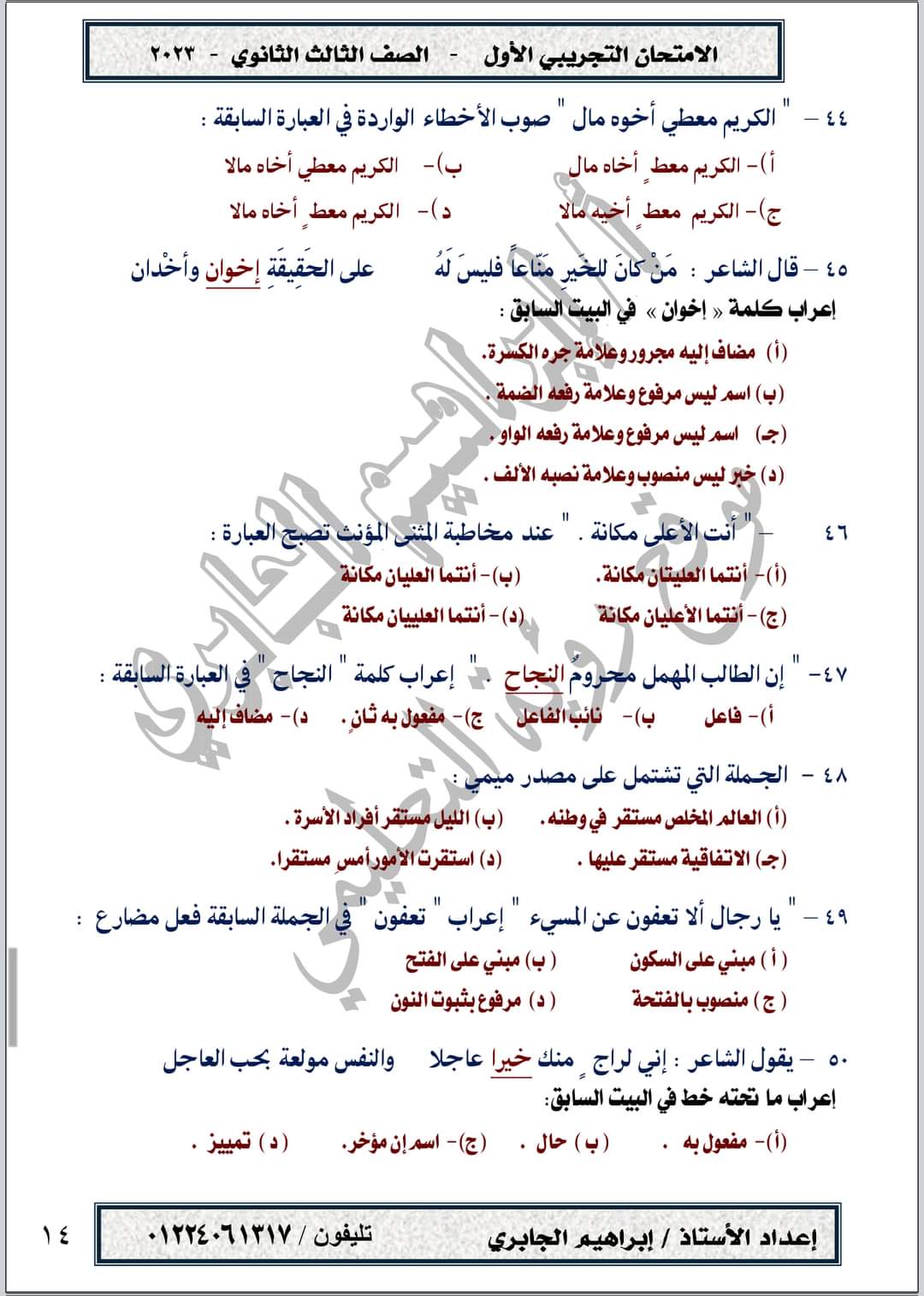 تحميل امتحان تجريبي في مادة اللغة العربية حسب المواصفات الجديدة الصف الثالث الثانوي 2023
