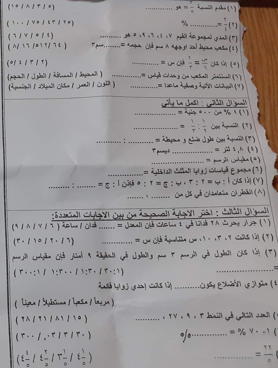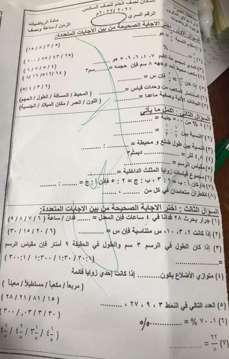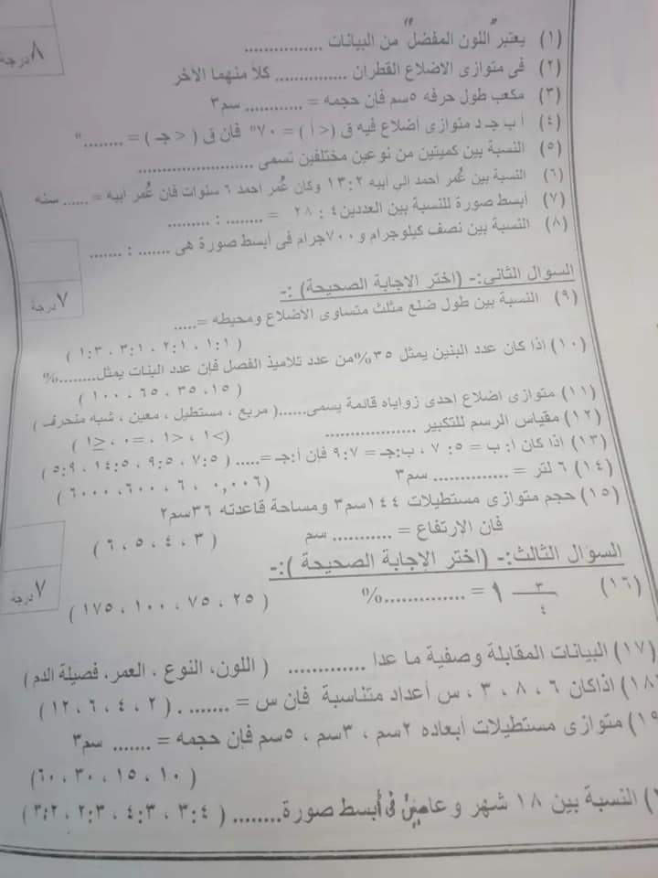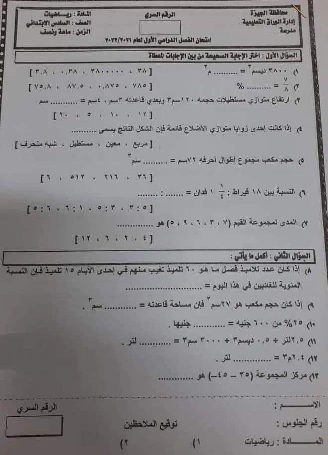 تحميل تجميع امتحانات المحافظات في الرياضيات الصف السادس الابتدائي الترم الاول 2022