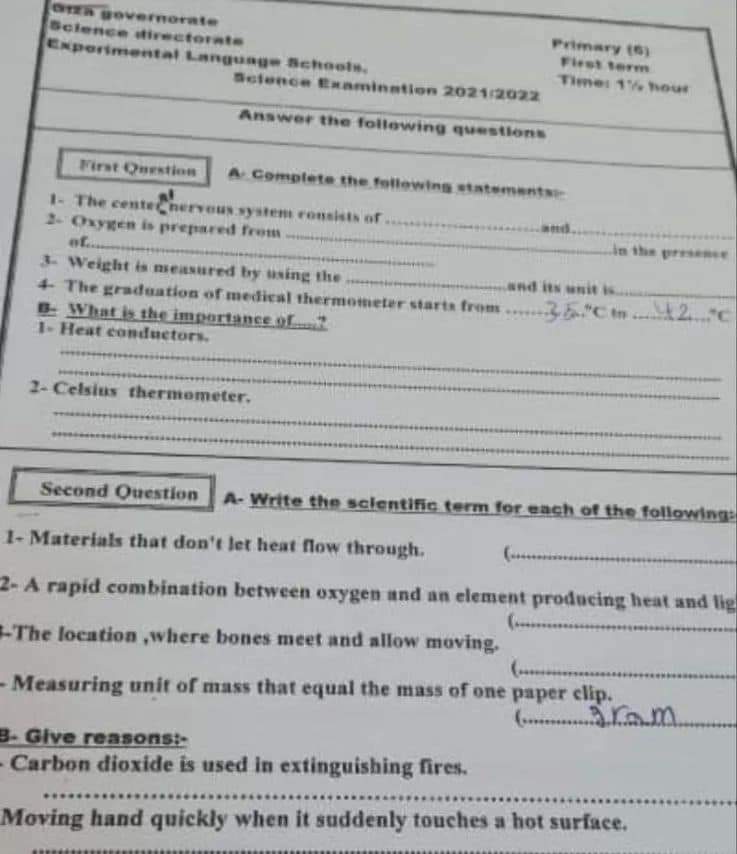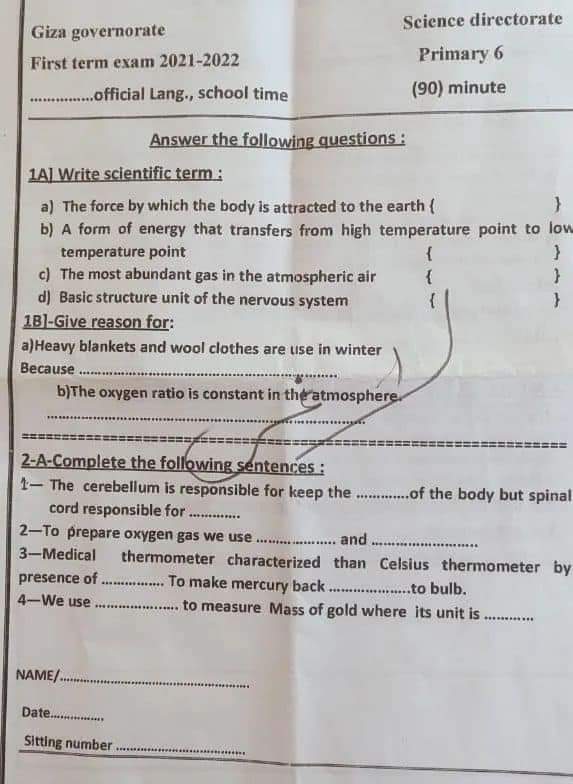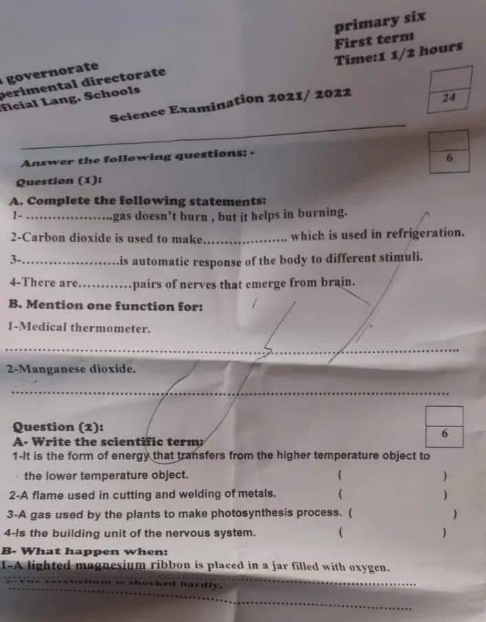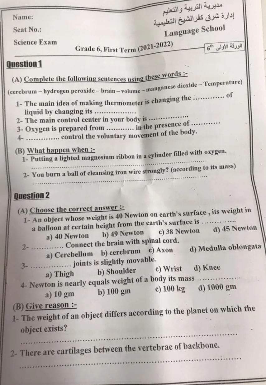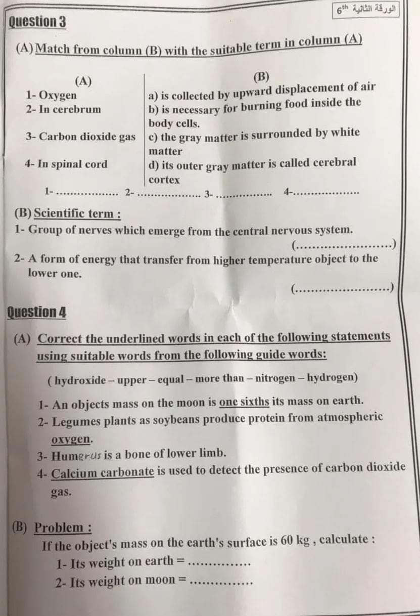 تحميل تجميع امتحانات المحافظات في الساينس science الصف السادس الابتدائي الترم الاول 2022
