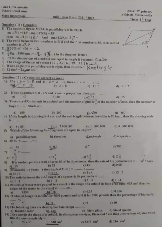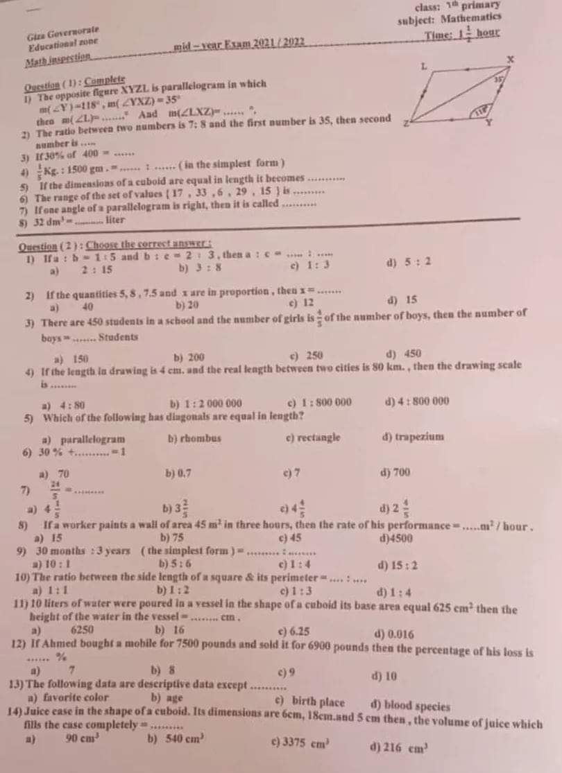 تجميع امتحانات المحافظات في الماث math الصف السادس الابتدائي الترم الاول 2022