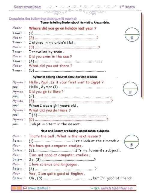 تحميل جميع محادثات اللغة الانجليزية المقررة للصف الأول الإعدادي ترم أول 2023
