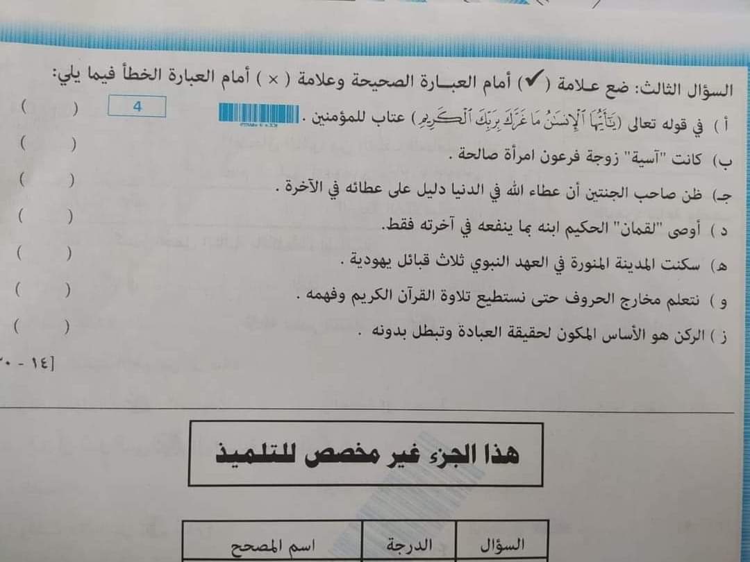 امتحانات اللغة العربية والقرآن الكريم الصف الرابع والخامس الابتدائي الترم الاول 2023
