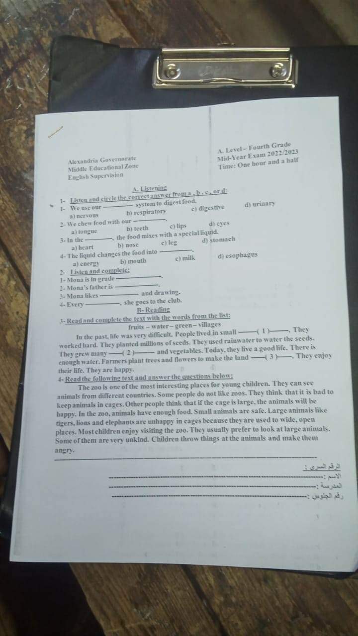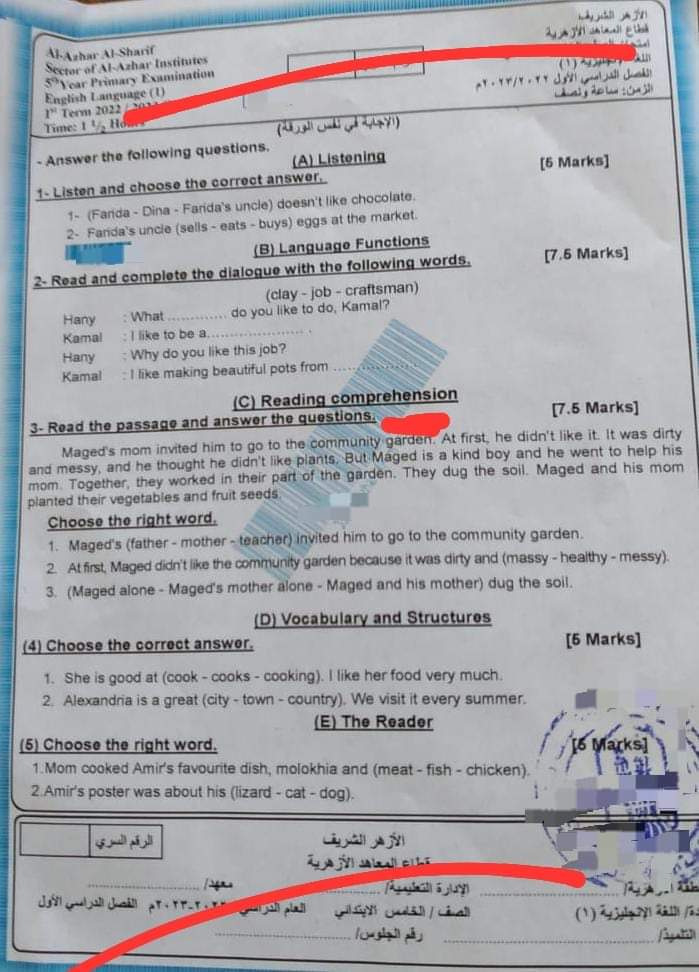 تحميل امتحانات اللغة الانجليزية الصف الخامس الابتدائي ازهر ترم أول 2023