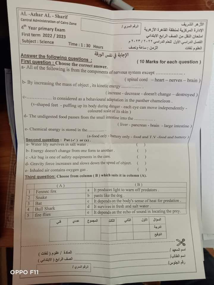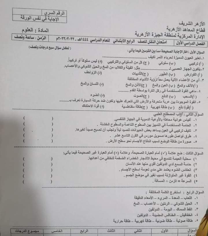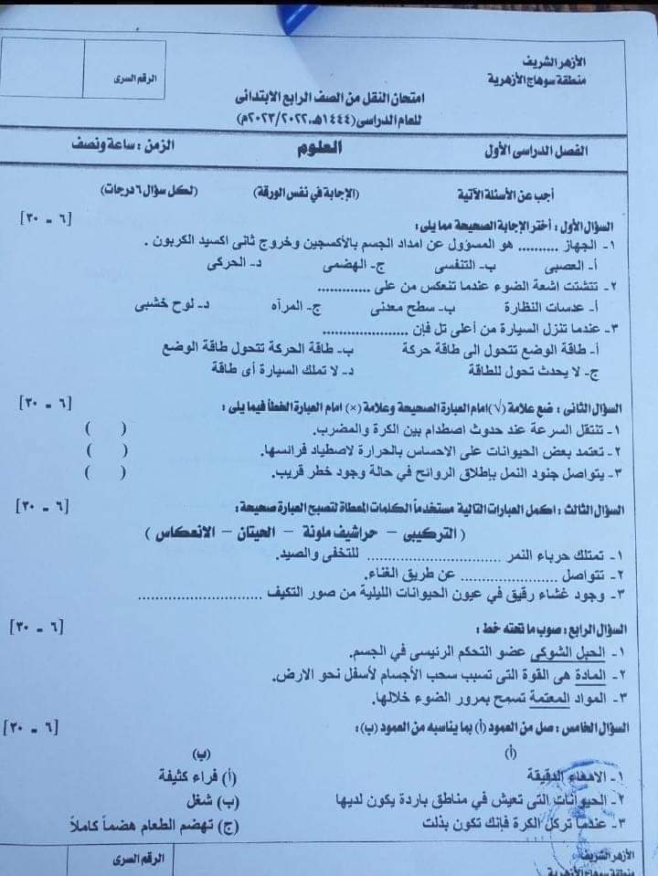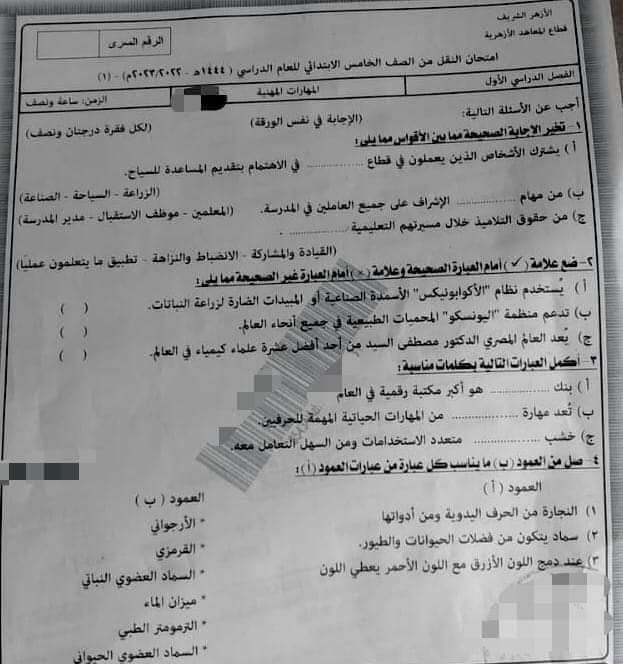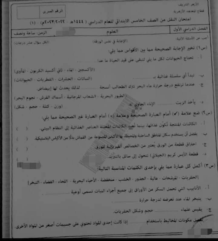 تحميل امتحانات علوم وساينس ومهارات مهنية الصف الخامس الابتدائي ازهر ترم أول 2023