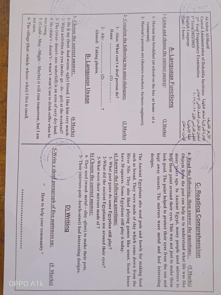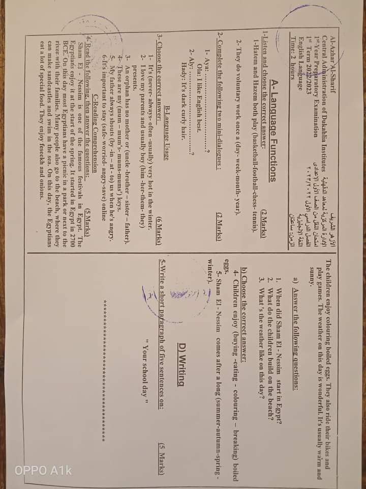 امتحان اللغة العربية الصف الخامس الابتدائي الترم الاول 2023 الأزهر