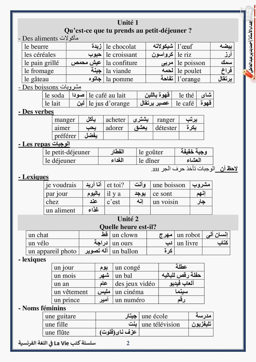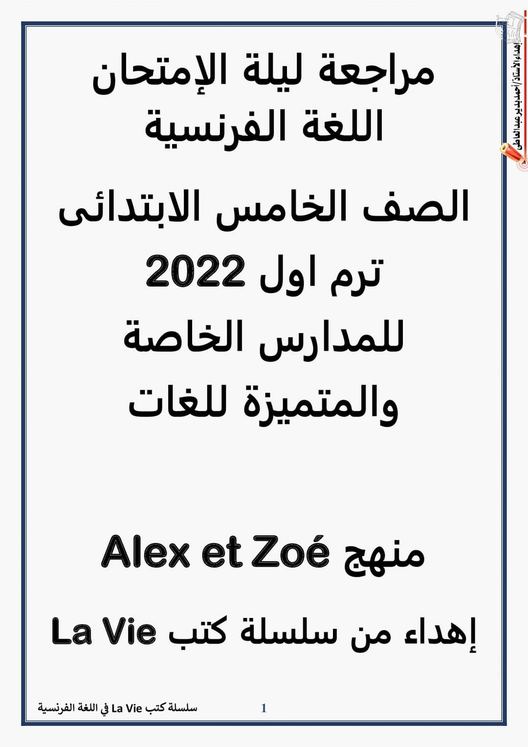مراجعة ليلة الامتحان لغة فرنسية للصف الخامس