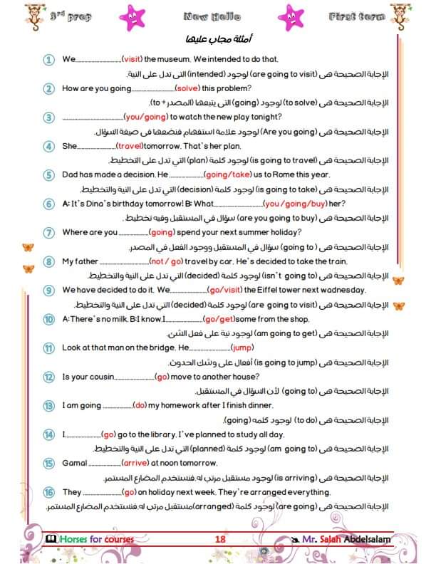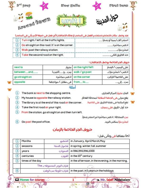 مذكرة مراجعة قواعد الصف الثالث الاعدادي – ترم اول