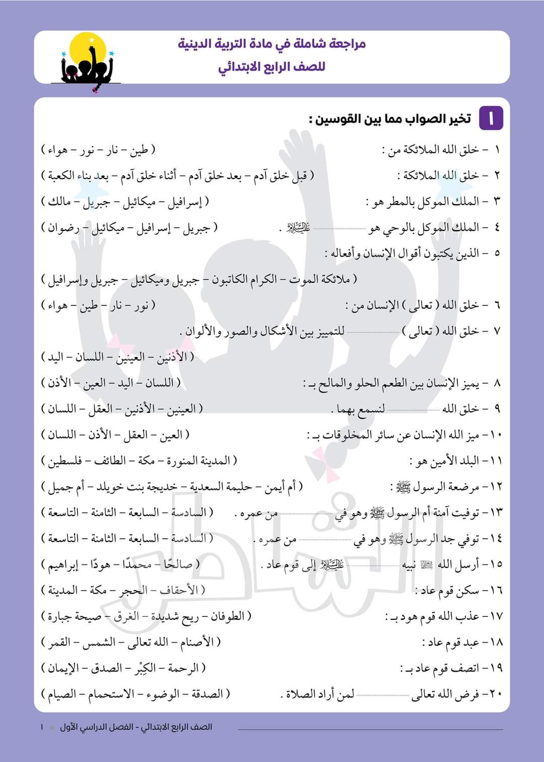 إليكم المراجعة الشاملة في مادة التربية الدينية الإسلامية للصف الرابع الابتدائي – الفصل الدراسي الأول.