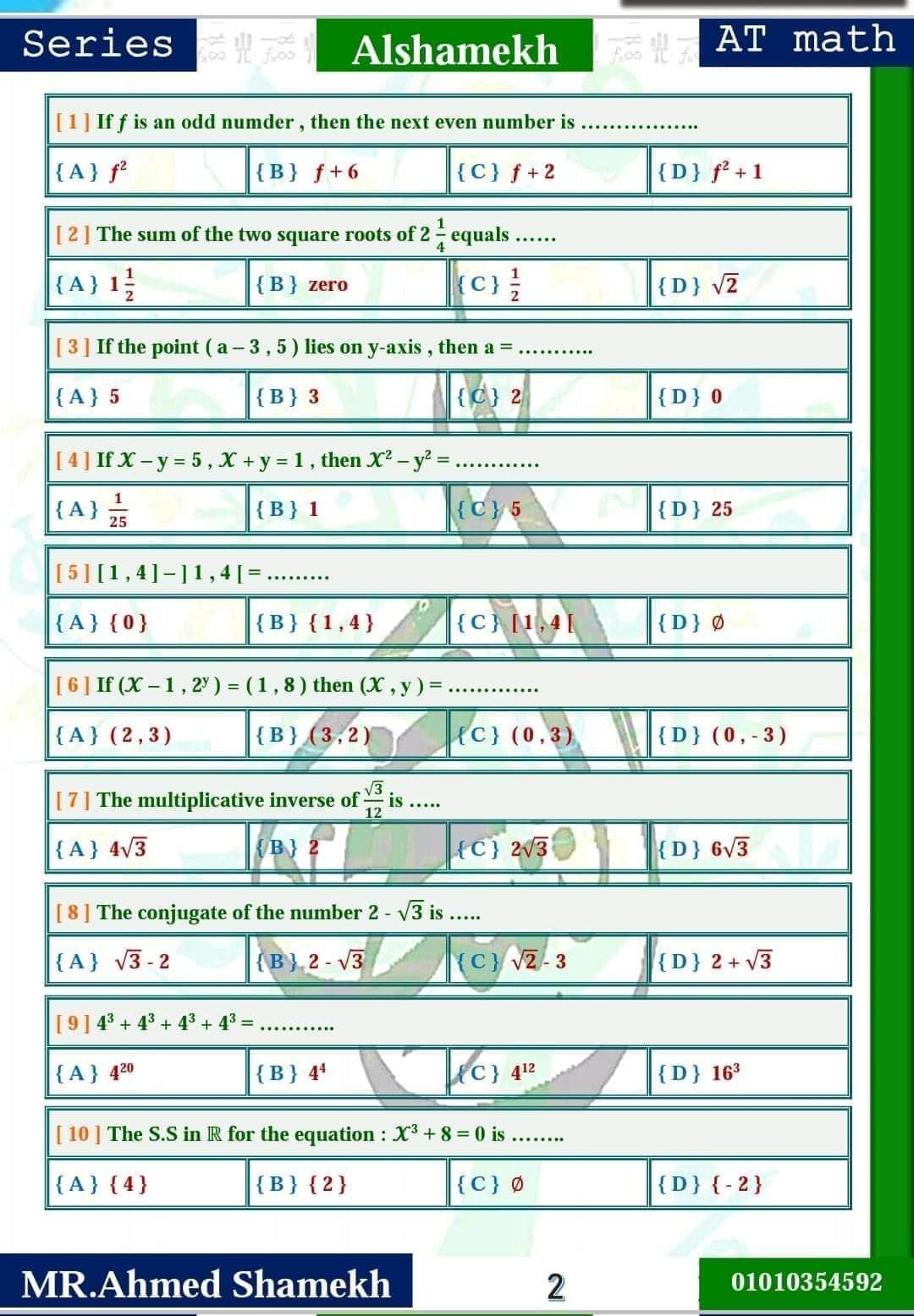 تحميل مذكرة مراجعة ليلة الامتحان ماث math الصف الثالث الاعدادي الترم الاول 2023