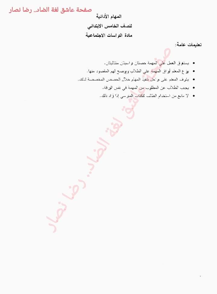 تحميل مهام الوزارة الرسمية دراسات اجتماعية الصف الخامس الابتدائي الترم الاول 2023