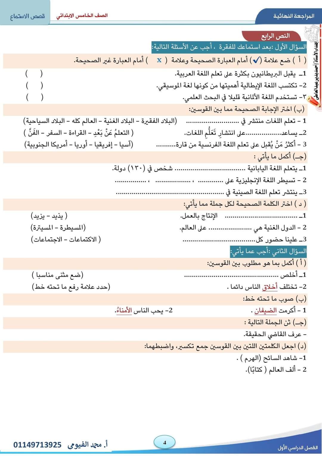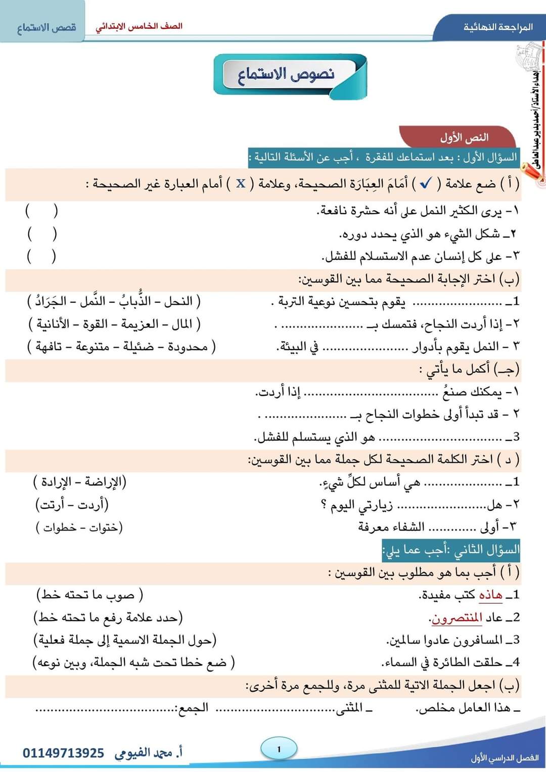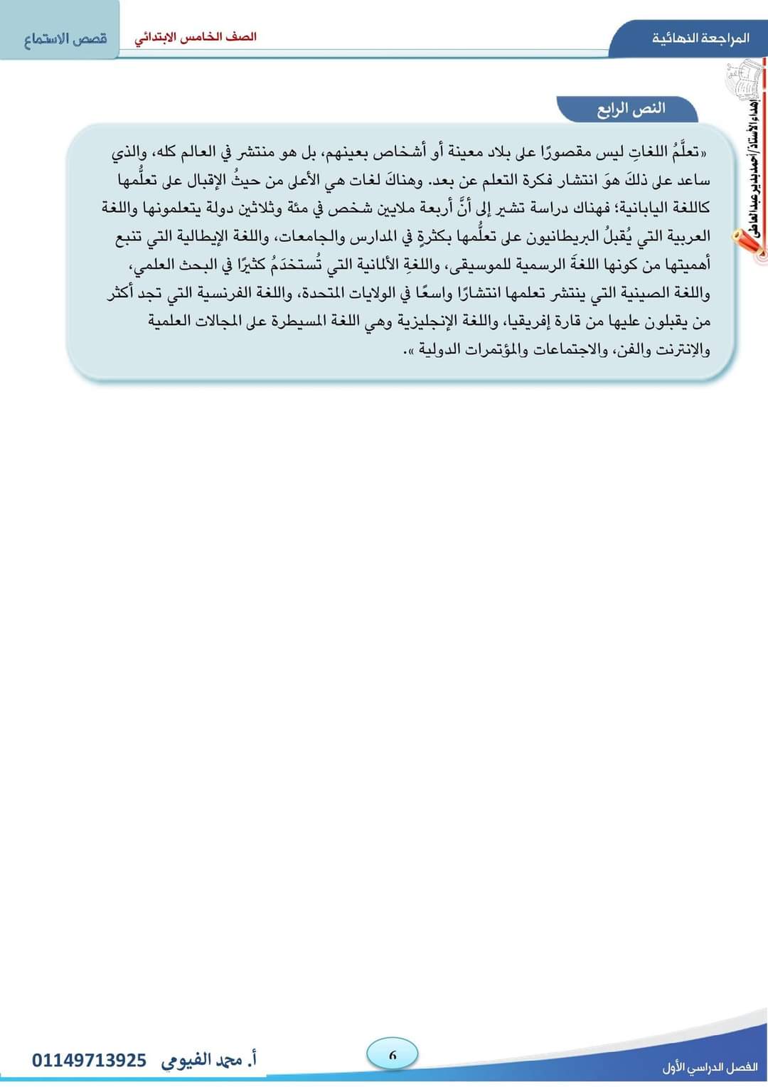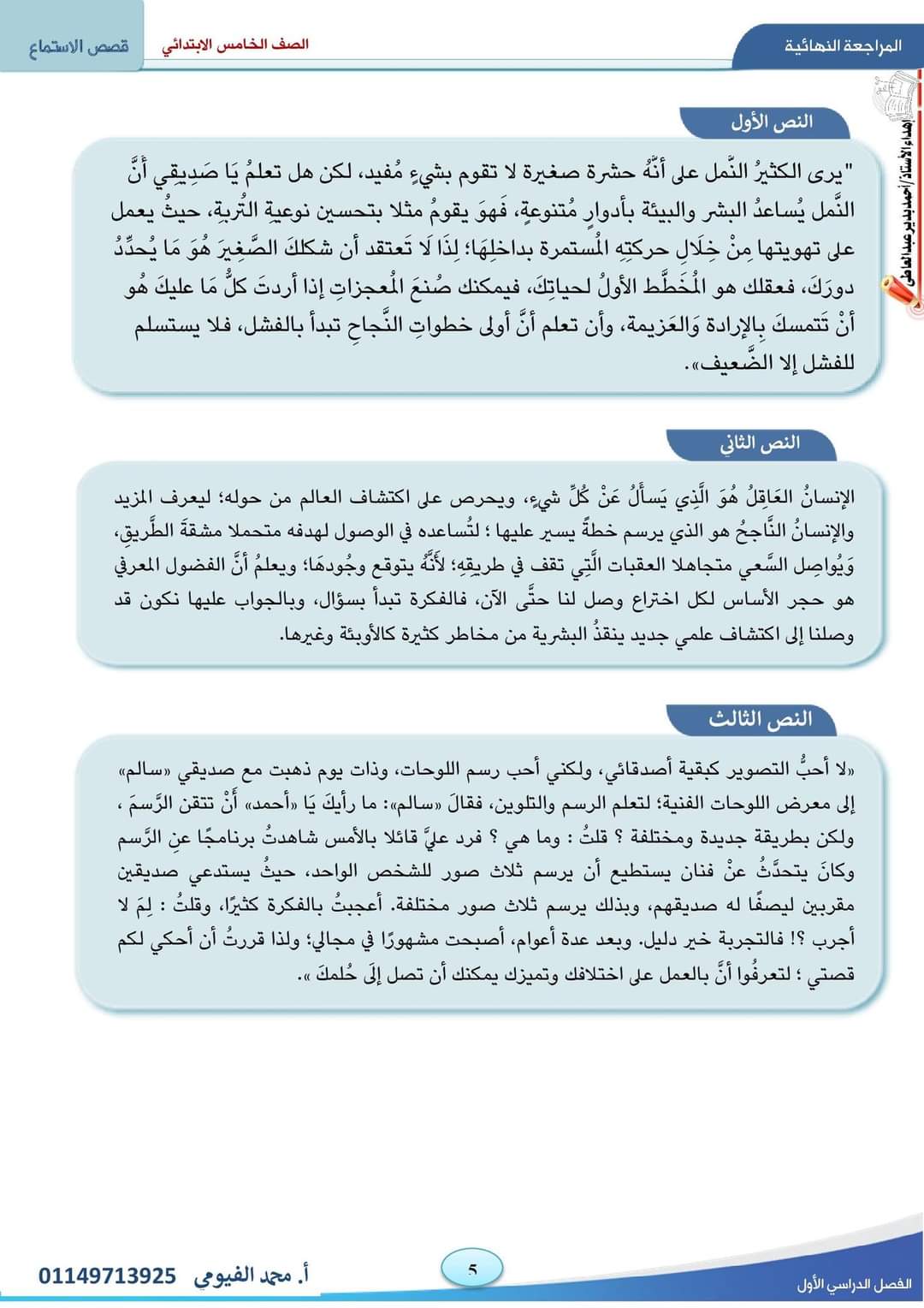 تحميل نصوص الاستماع المقررة على الصف الخامس الابتدائي الترم الاول 2023