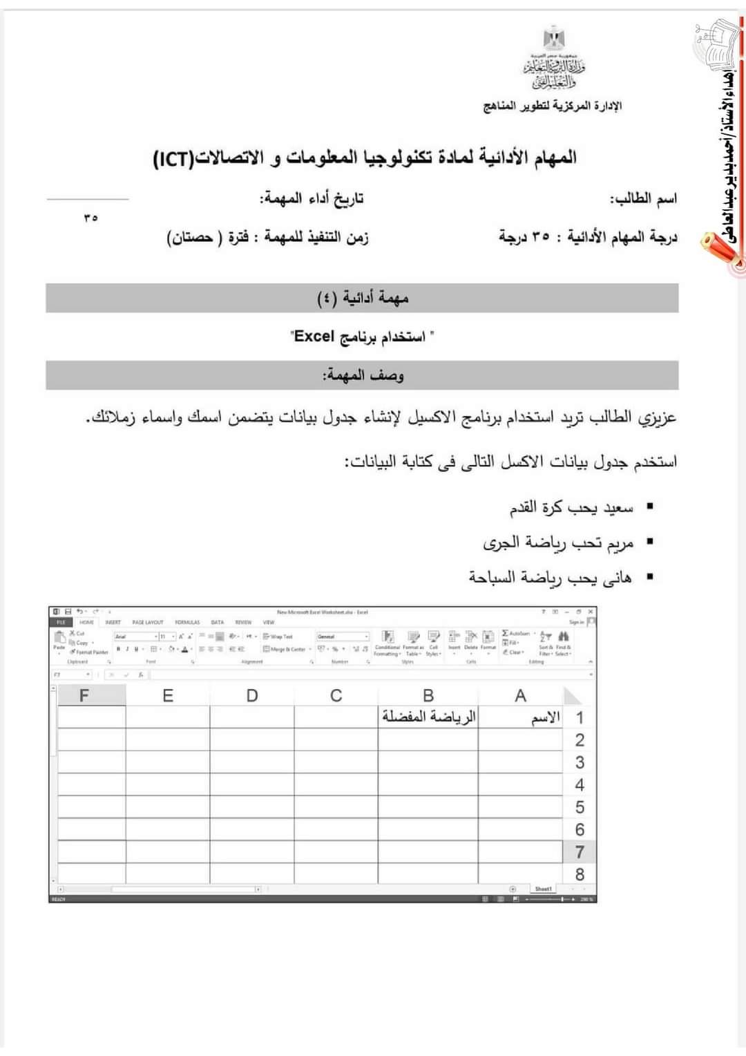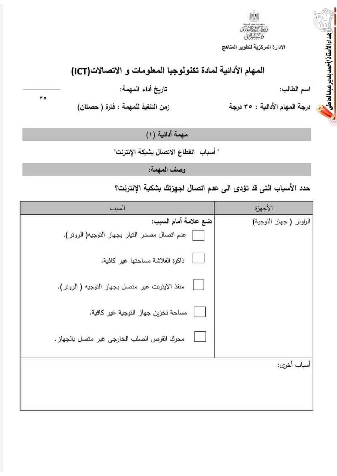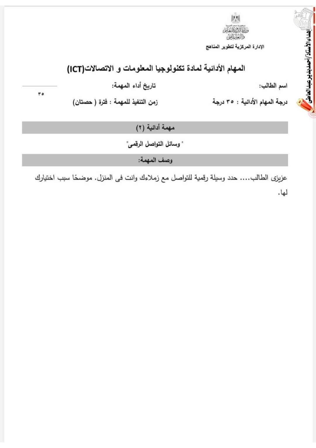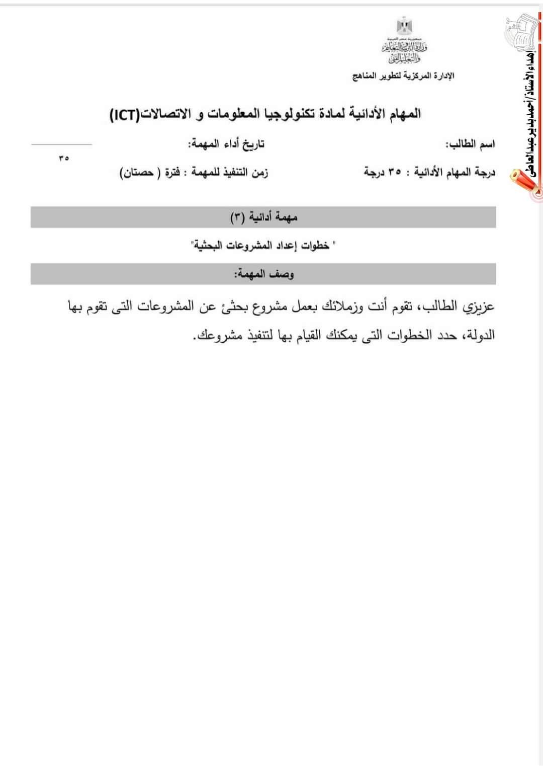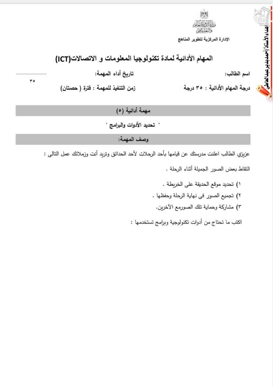 تحميل نماذج الوزارة مهام ادائية تكنولوجيا المعلومات والاتصالات الصف الخامس الابتدائي الترم الاول 2023 مع الاجابات