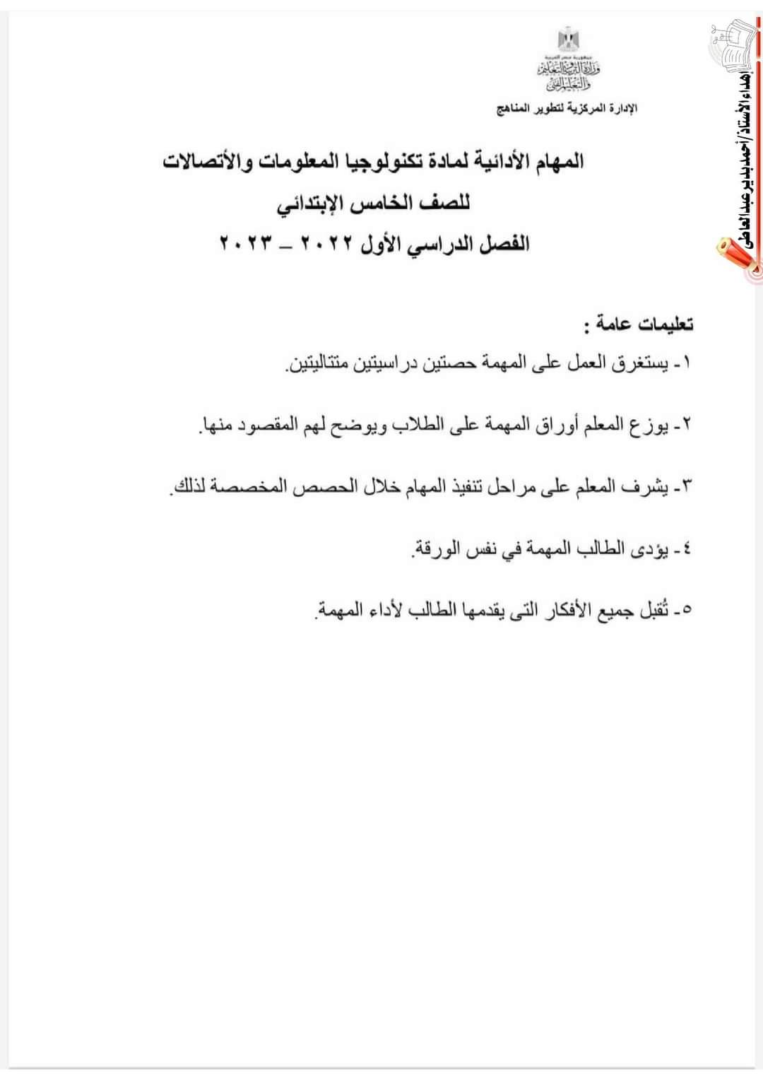 تحميل مهام أدائية للصف الخامس (تكنولوجيا المعلومات)