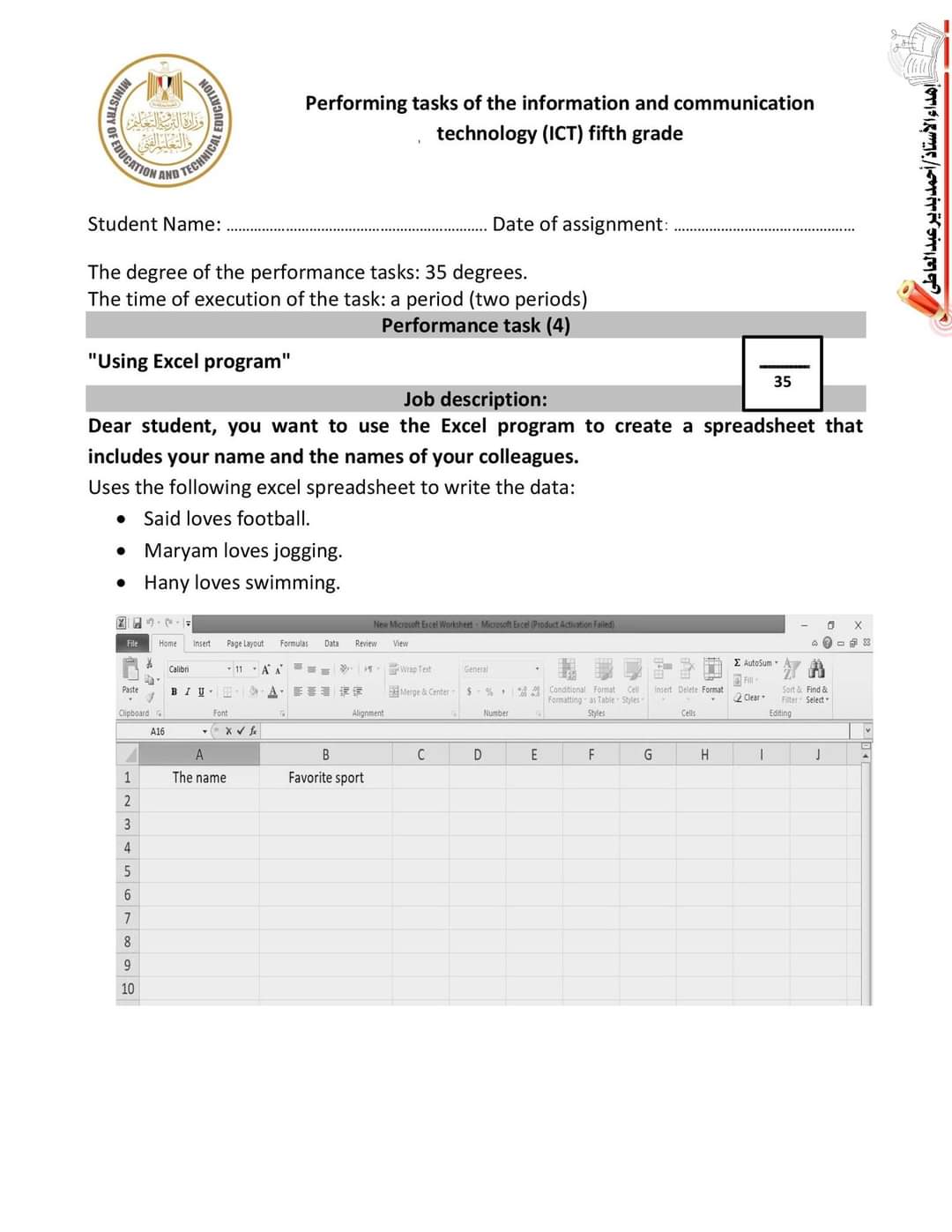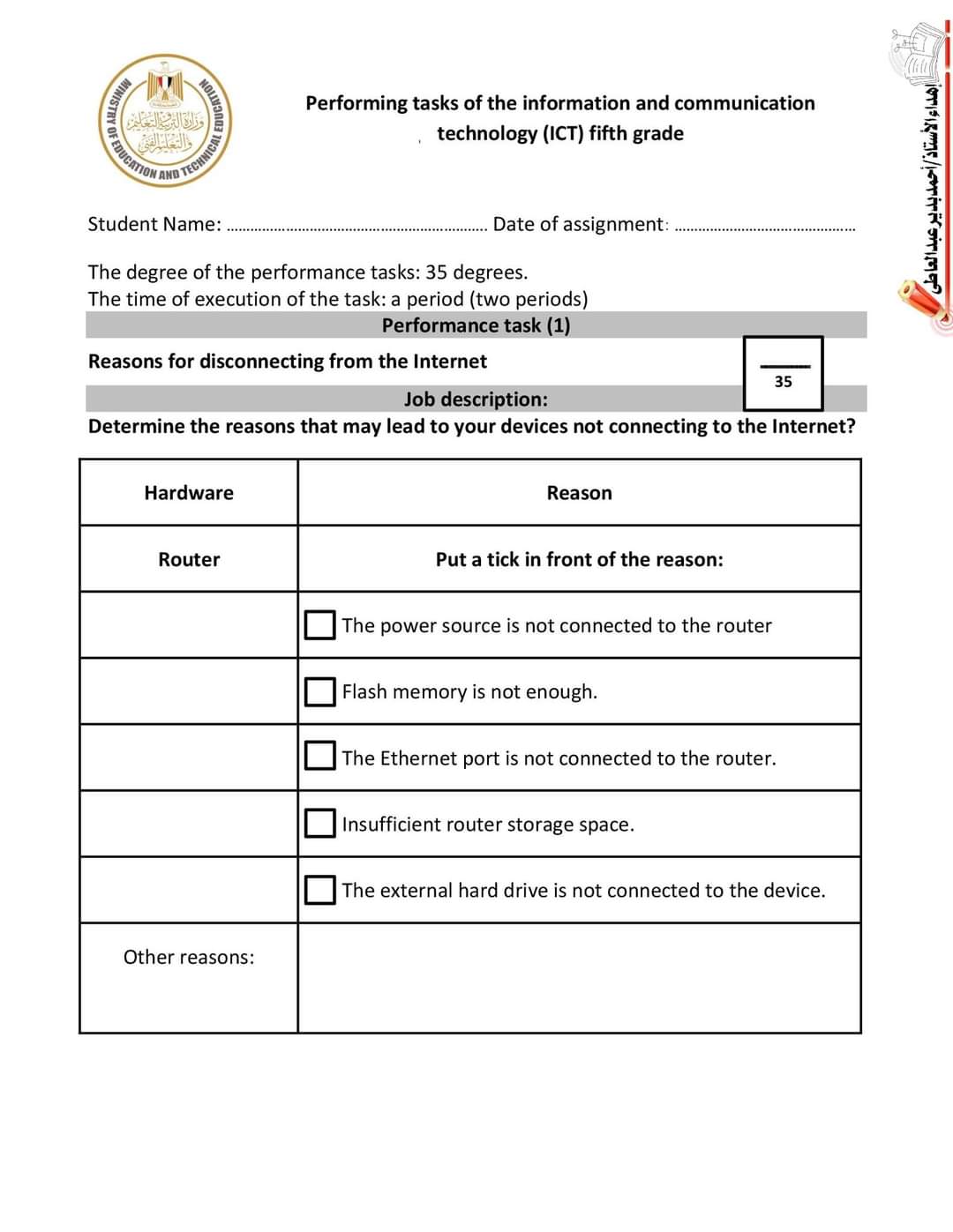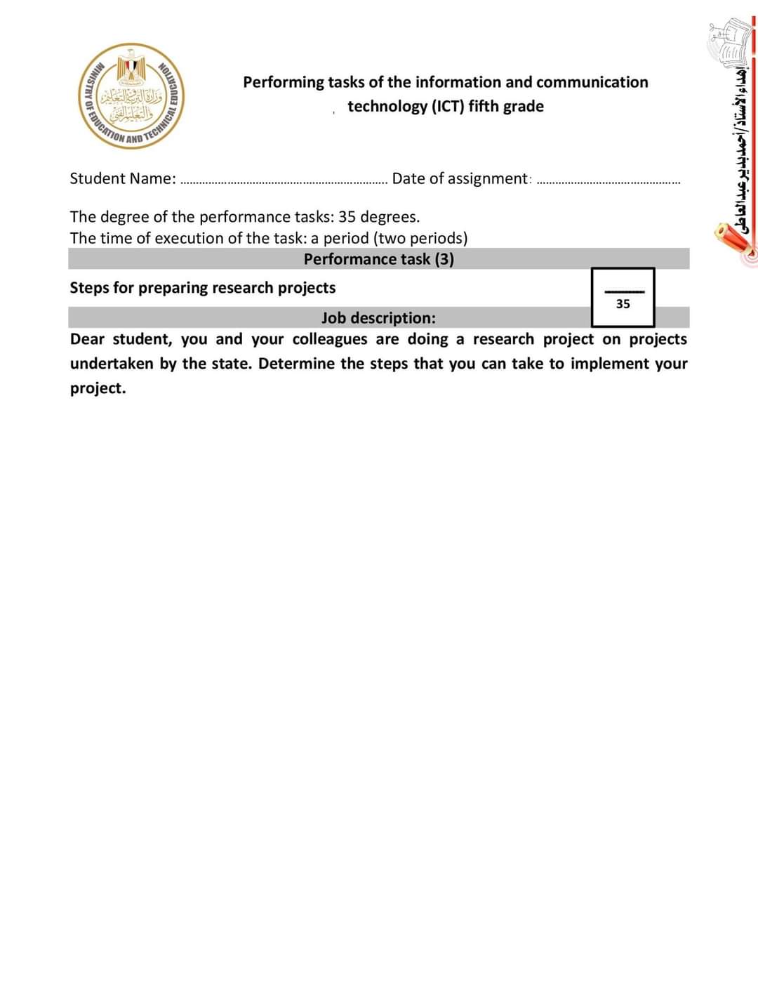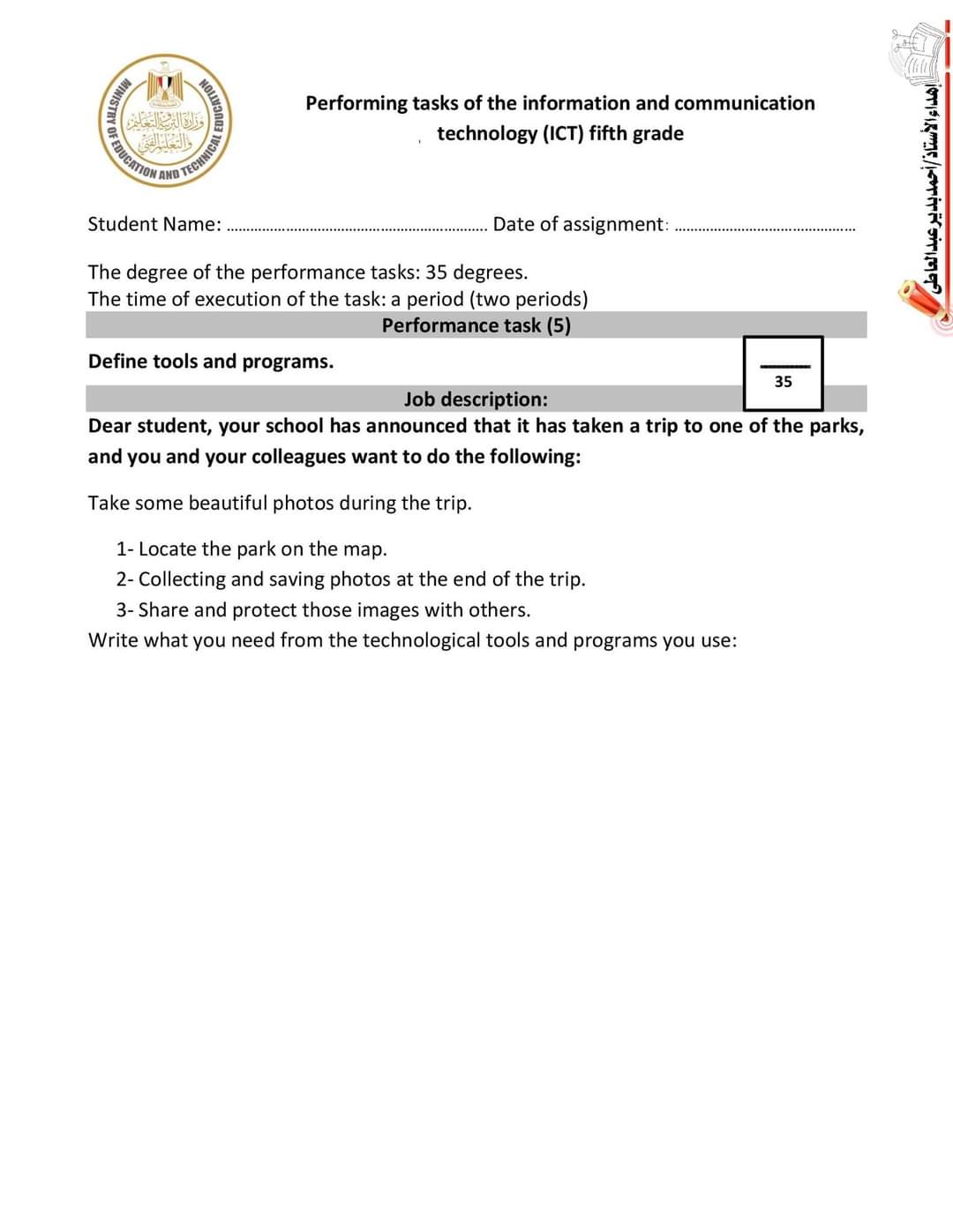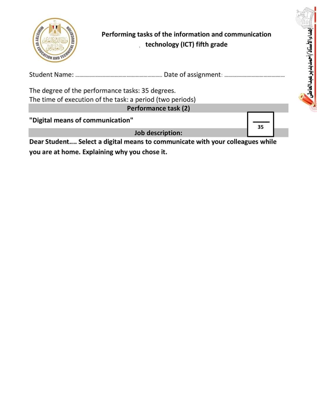 تحميل اجابات المهام الادائية ICT خامسة ابتدائي لغات