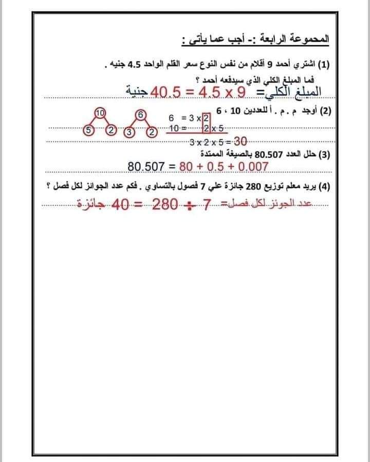 تحميل اجابات نماذج الوزارة الاسترشادية في الرياضيات الصف الخامس الابتدائي الترم الاول 2023