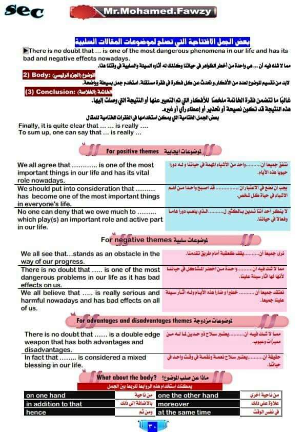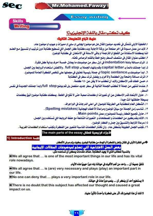 طريقة كتابة المقال والتعامل مع الترجمة المرحلة الثانوية