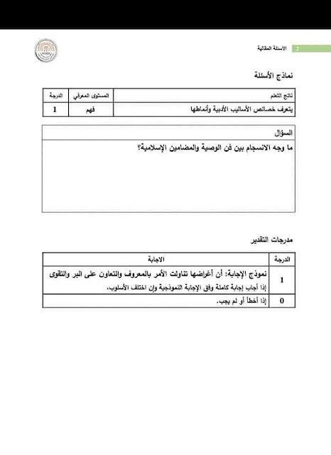 تقرير أو رسالة أو بسط أو تلخيص أو رسالة أو إعلان أو تعليق أو برقية أو مناظرة ((٣ درجات ))
