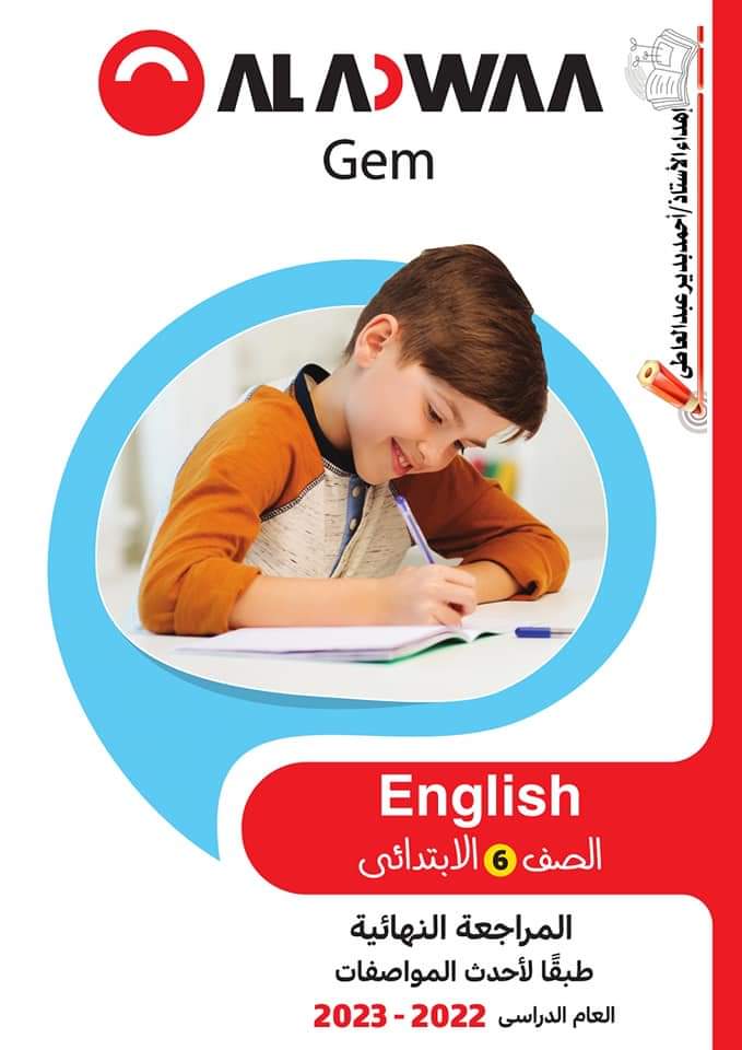 تحميل مراجعة ليلة الامتحان لغة انجليزية الصف السادس الابتدائى الترم الاول 2023 من الأضواء