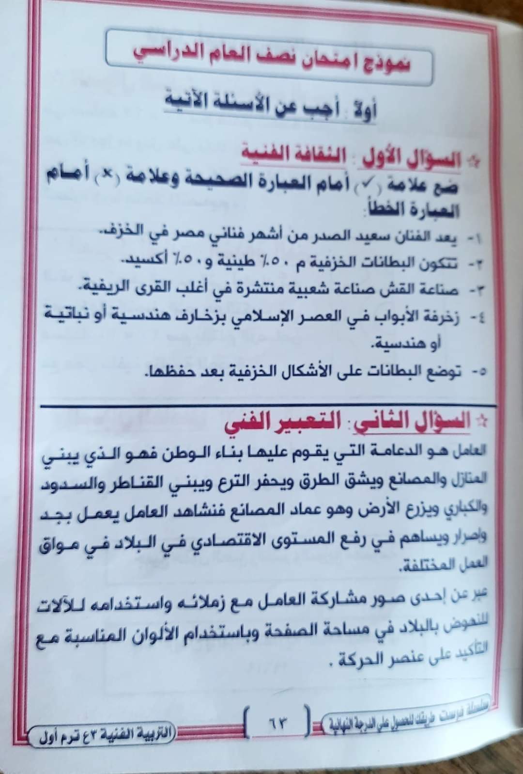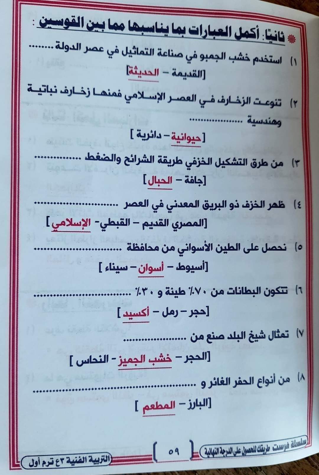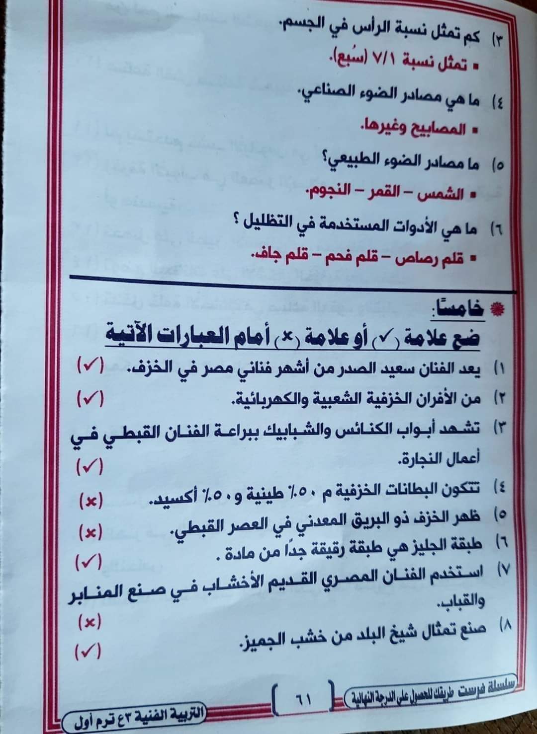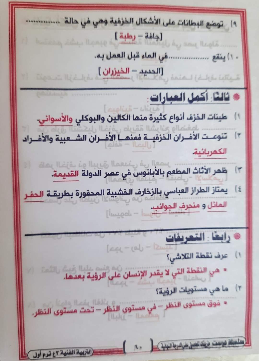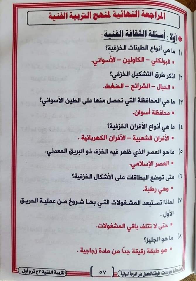 تحميل مراجعة ليلة الامتحان تربية فنية الصف الثالث الاعدادي ترم أول 2023 بالاجابات