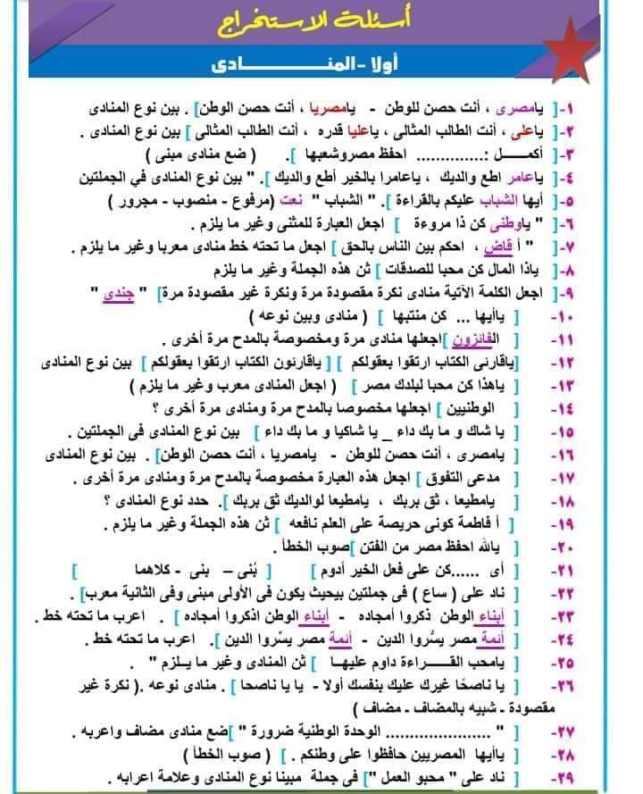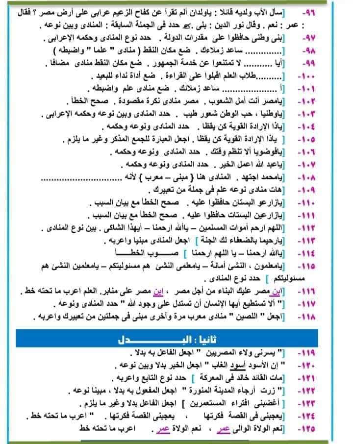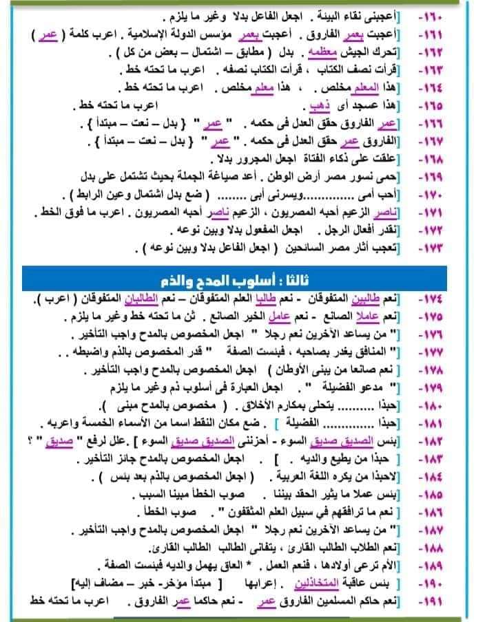 تحميل ملزمة مراجعة للقواعد النحوية للصف الثالث الاعدادي الترم الاول 2023