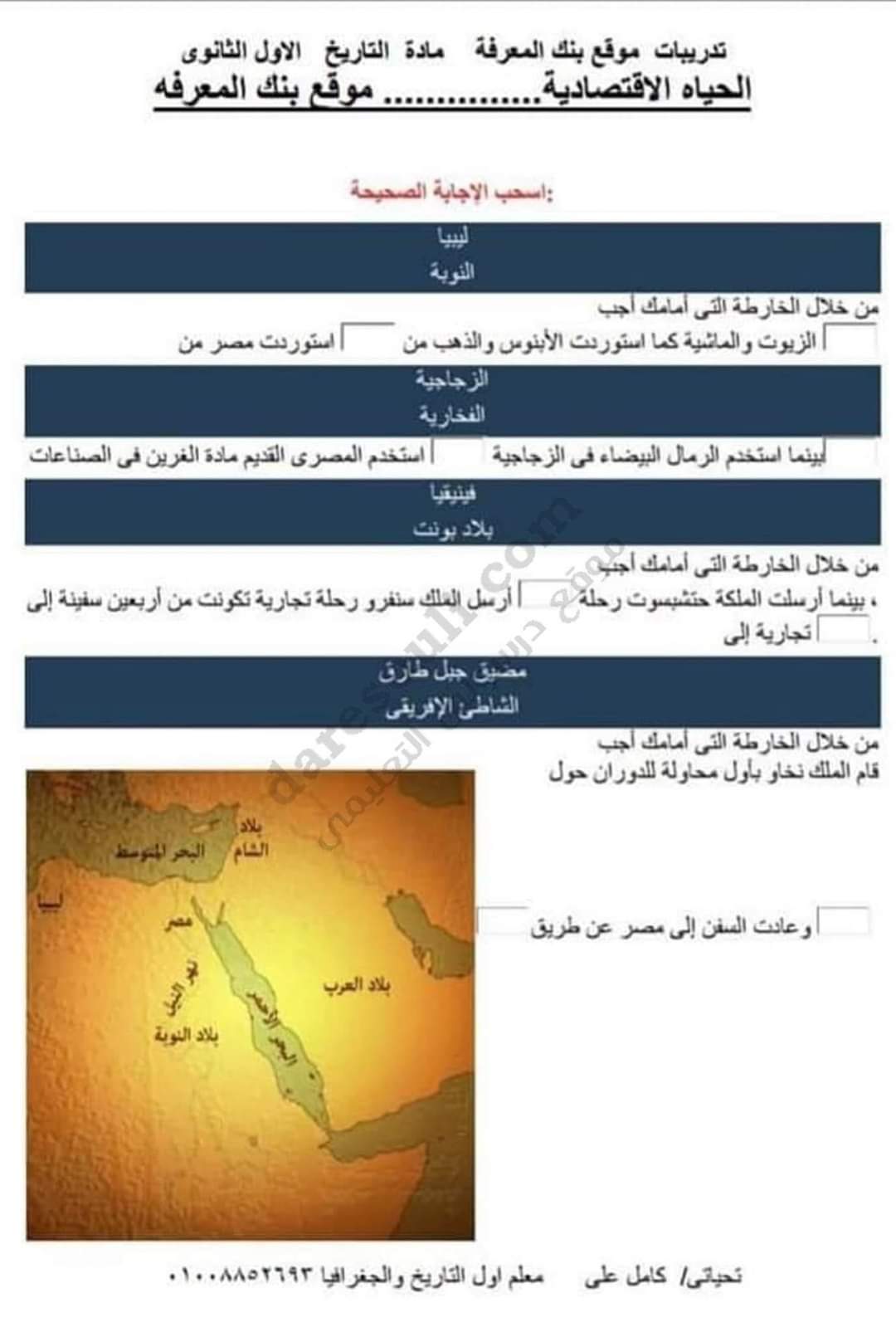 تحميل تجميع اسئلة بنك المعرفة تاريخ الصف الاول الثانوي الترم الاول 2023