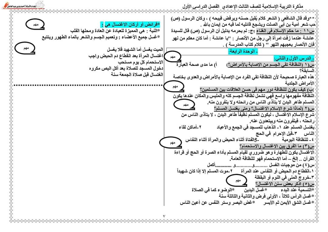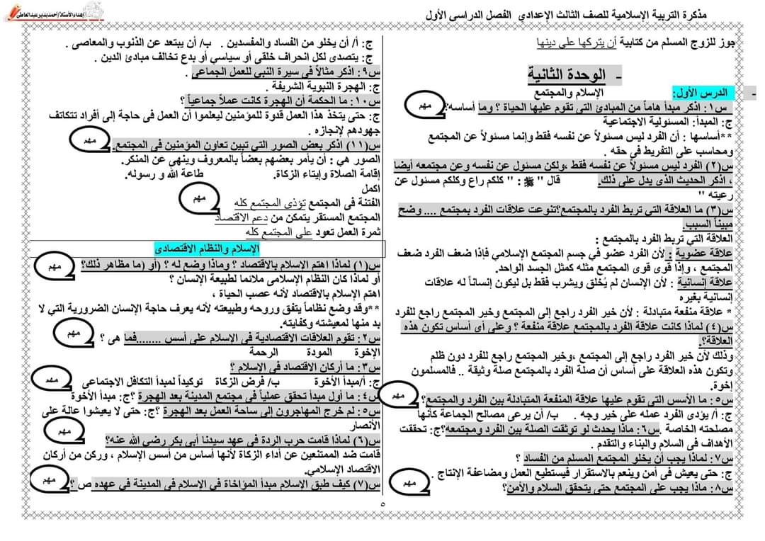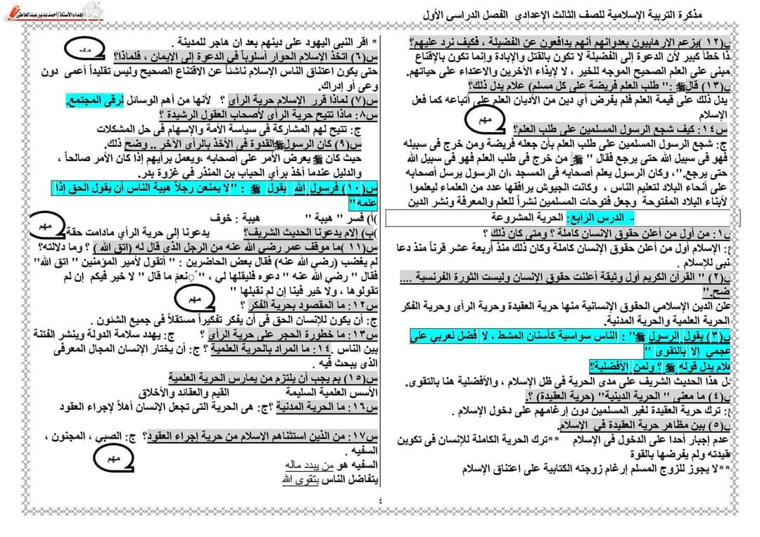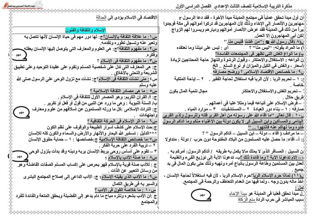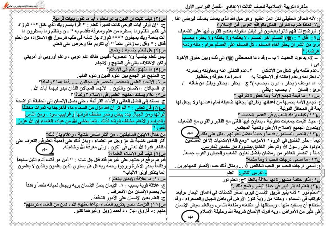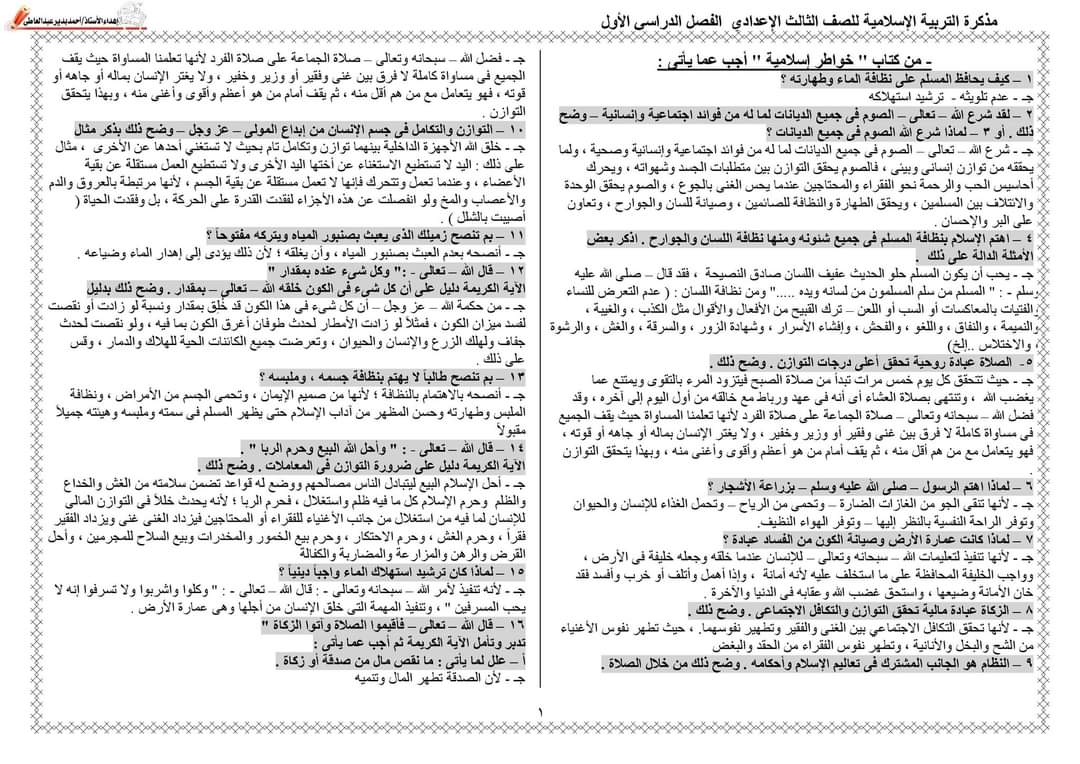 تحميل مراجعة ليلة الامتحان دين الصف الثالث الاعدادي ترم أول 2023