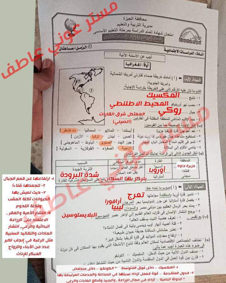 تحميل اجابة امتحان الدراسات محافظة الجيزة الصف الثالث الاعدادي الترم الاول 2023 لمستر عوني عاطف