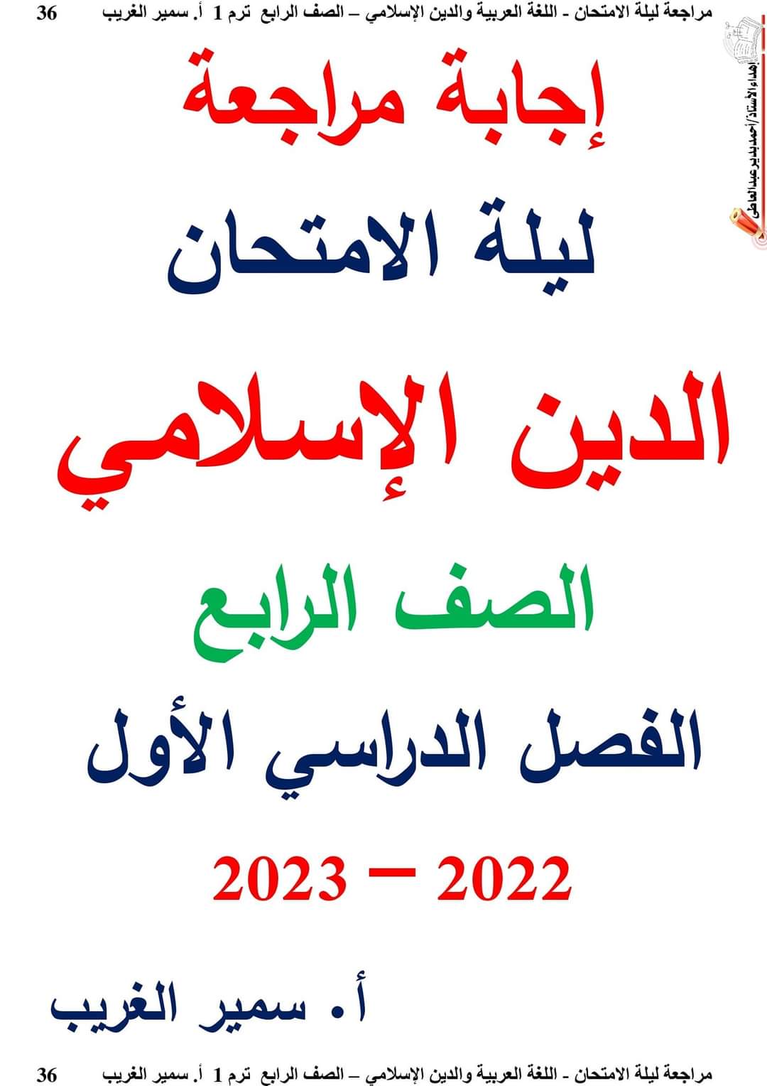 تحميل حل مراجعة سمير الغريب لغة عربية وتربية اسلامية الصف الرابع الابتدائي الترم الاول 2023