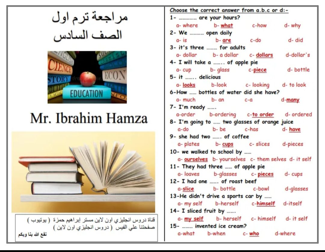 تحميل الاسئلة المتوقعة لغة انجليزية الصف السادس الابتدائى الترم الاول 2023 كل المحافظات