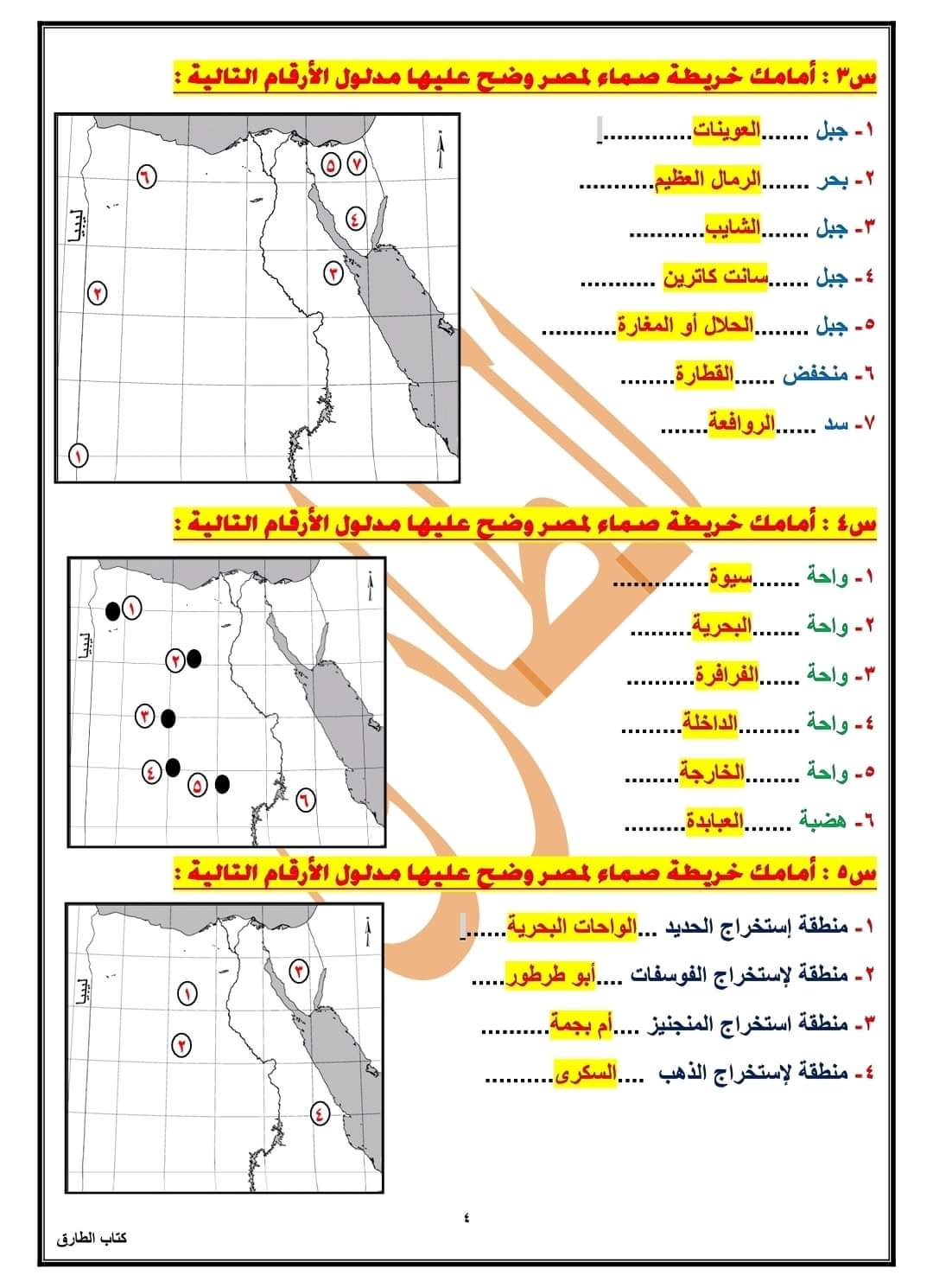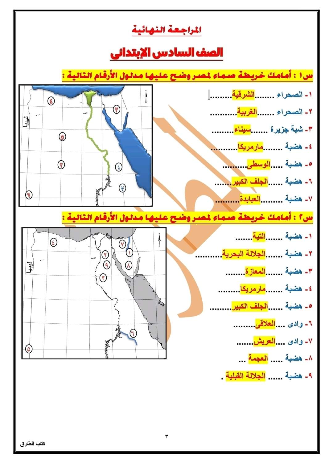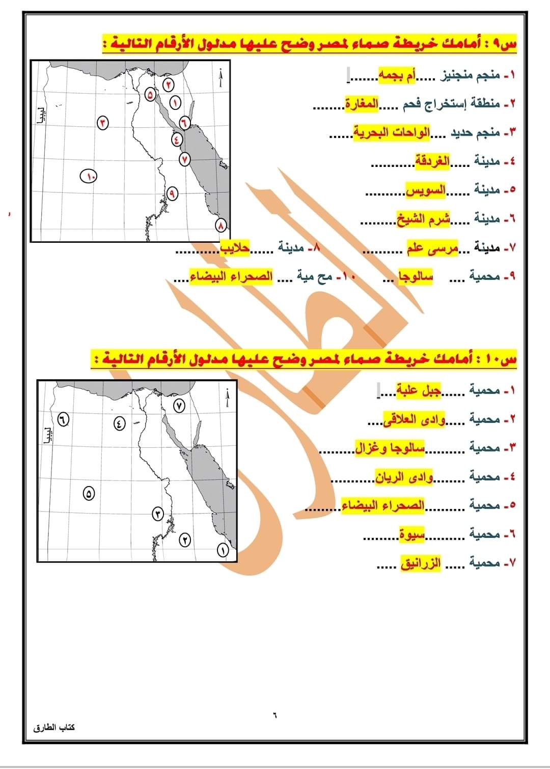 تحميل الخرائط المتوقعة الصف السادس الابتدائى الترم الثاني 2023 بالاجابات