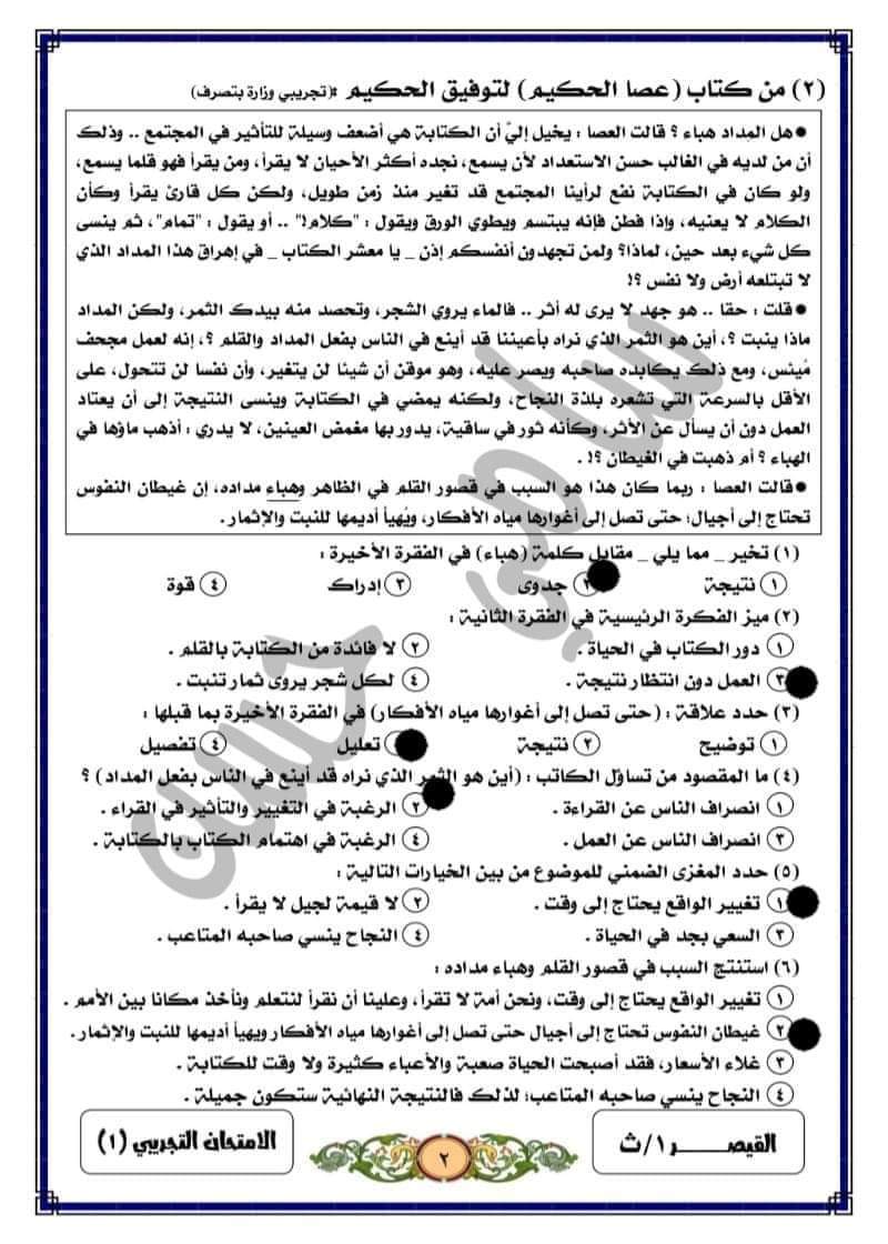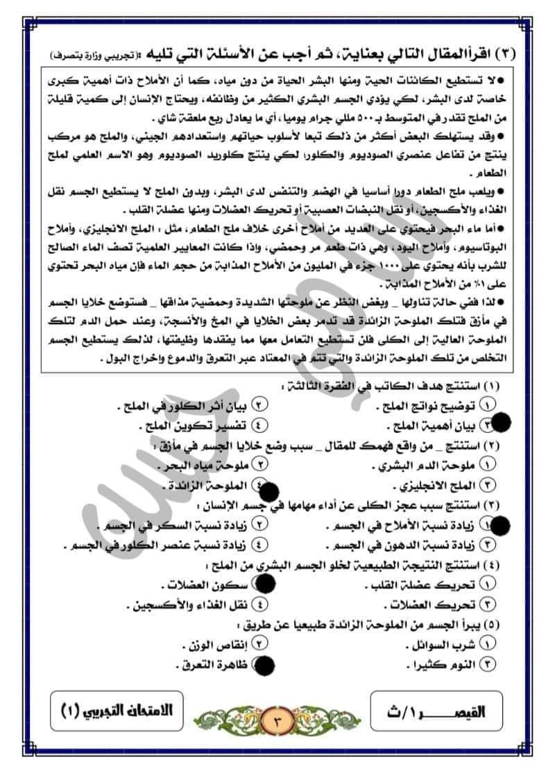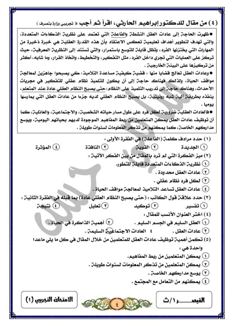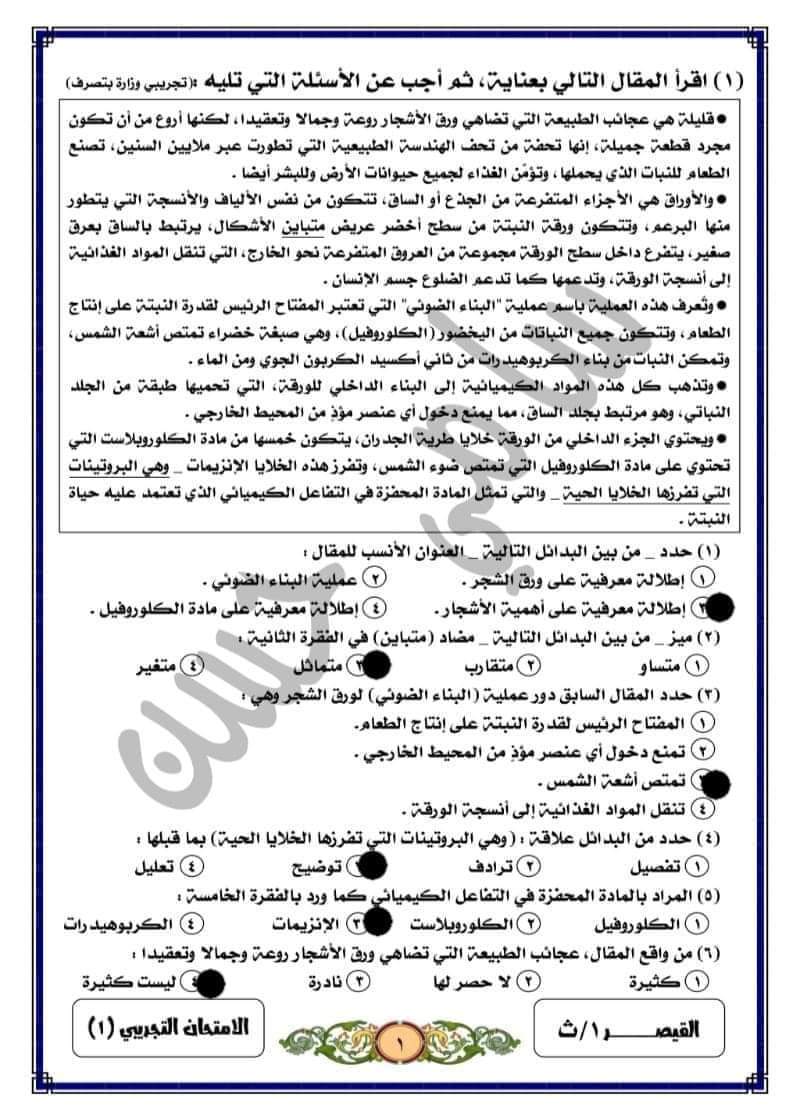 تحميل المقالات متحررة المحتوى التي وردت سابقا بامتحانات الوزارة التجريبية الصف الاول الثانوي بالإجابات