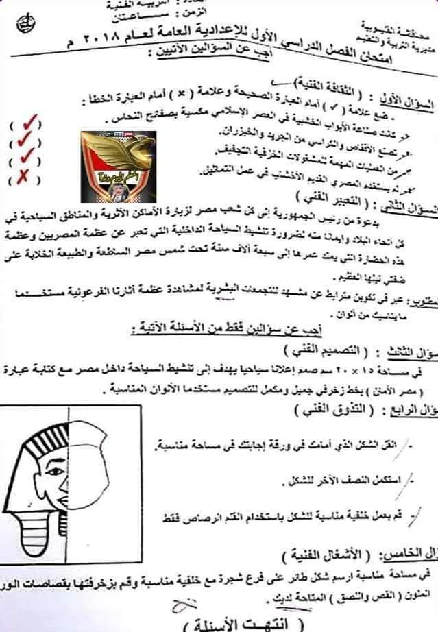 تحميل نماذج امتحانات تربية فنية سابقة الصف الثالث الاعدادي ترم أول 2023 مع الحل