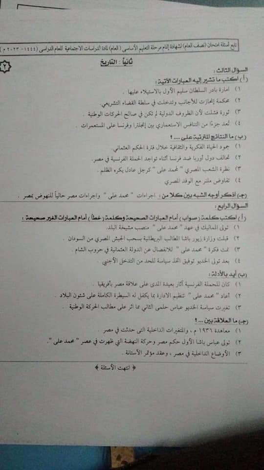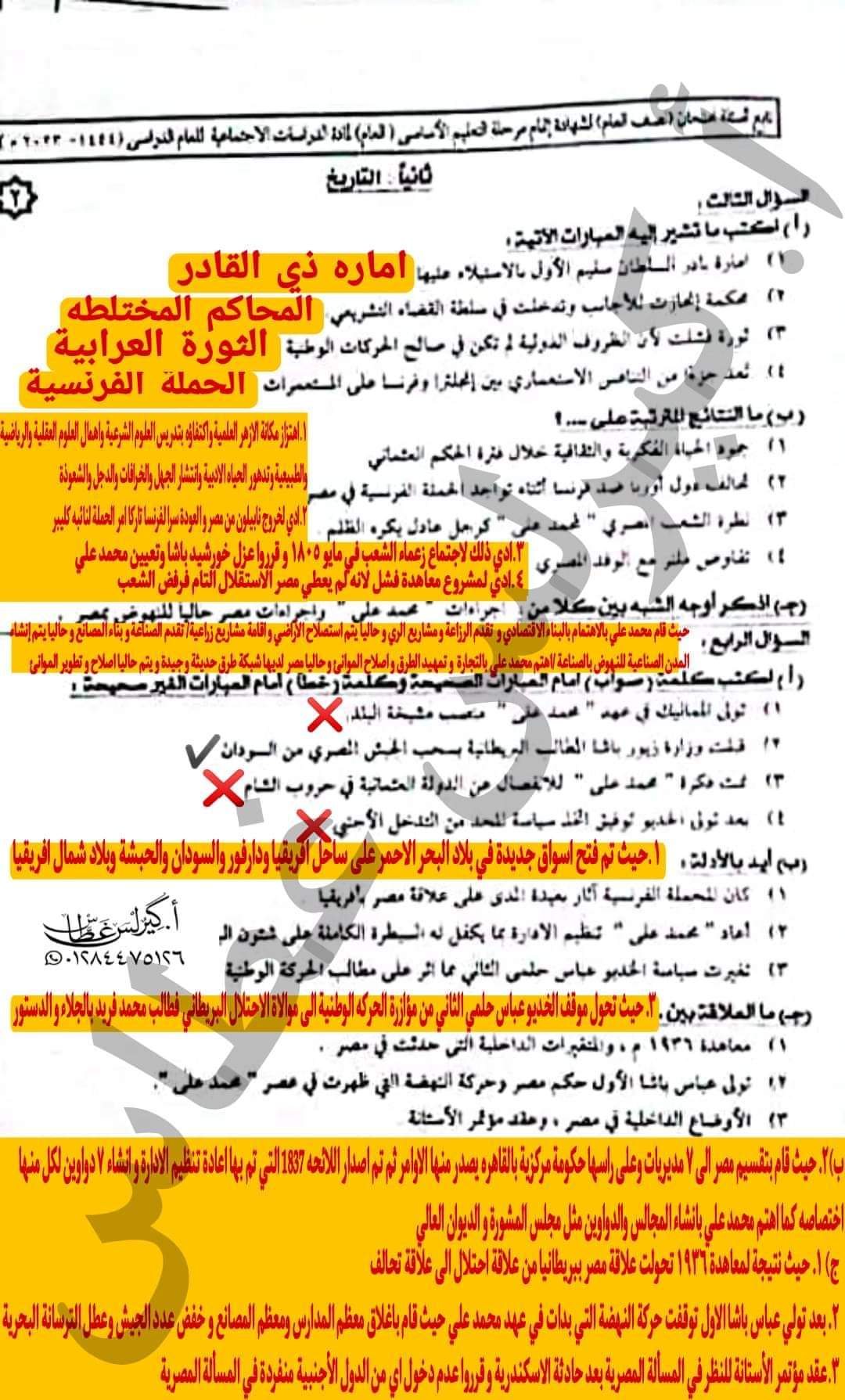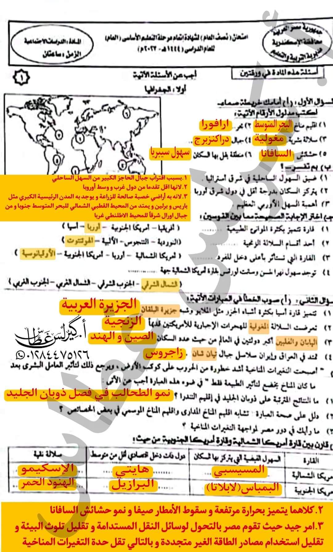 حل امتحان الدراسات الاجتماعية محافظة الاسكندرية الصف الثالث الاعدادي الترم الاول 2023