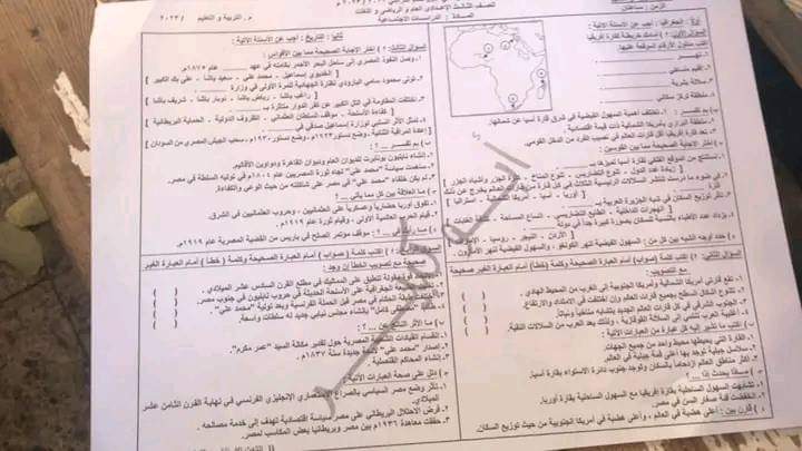 امتحان الدراسات الاجتماعية محافظة الشرقية الصف الثالث الاعدادي الترم الاول 2023