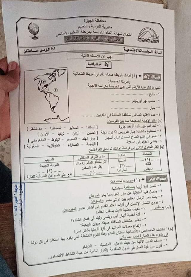 تحميل امتحان الدراسات الاجتماعية محافظة الجيزة الصف الثالث الاعدادي الترم الاول 2023