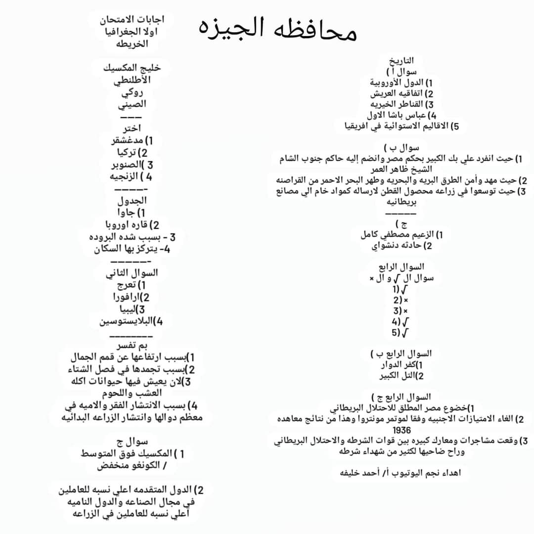 تحميل حل امتحان الدراسات محافظة الجيزة الصف الثالث الاعدادي الترم الاول 2023