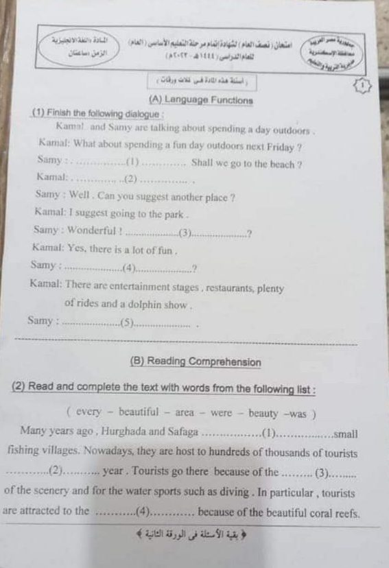 تحميل امتحان اللغة الانجليزية محافظة الاسكندرية الصف الثالث الاعدادي الترم الاول 2023