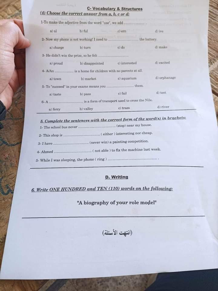 تحميل امتحان اللغة الانجليزية محافظة البحيرة الصف الثالث الاعدادي الترم الاول 2023