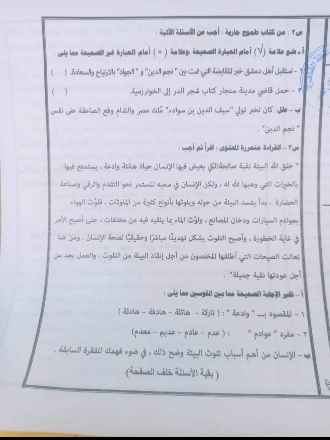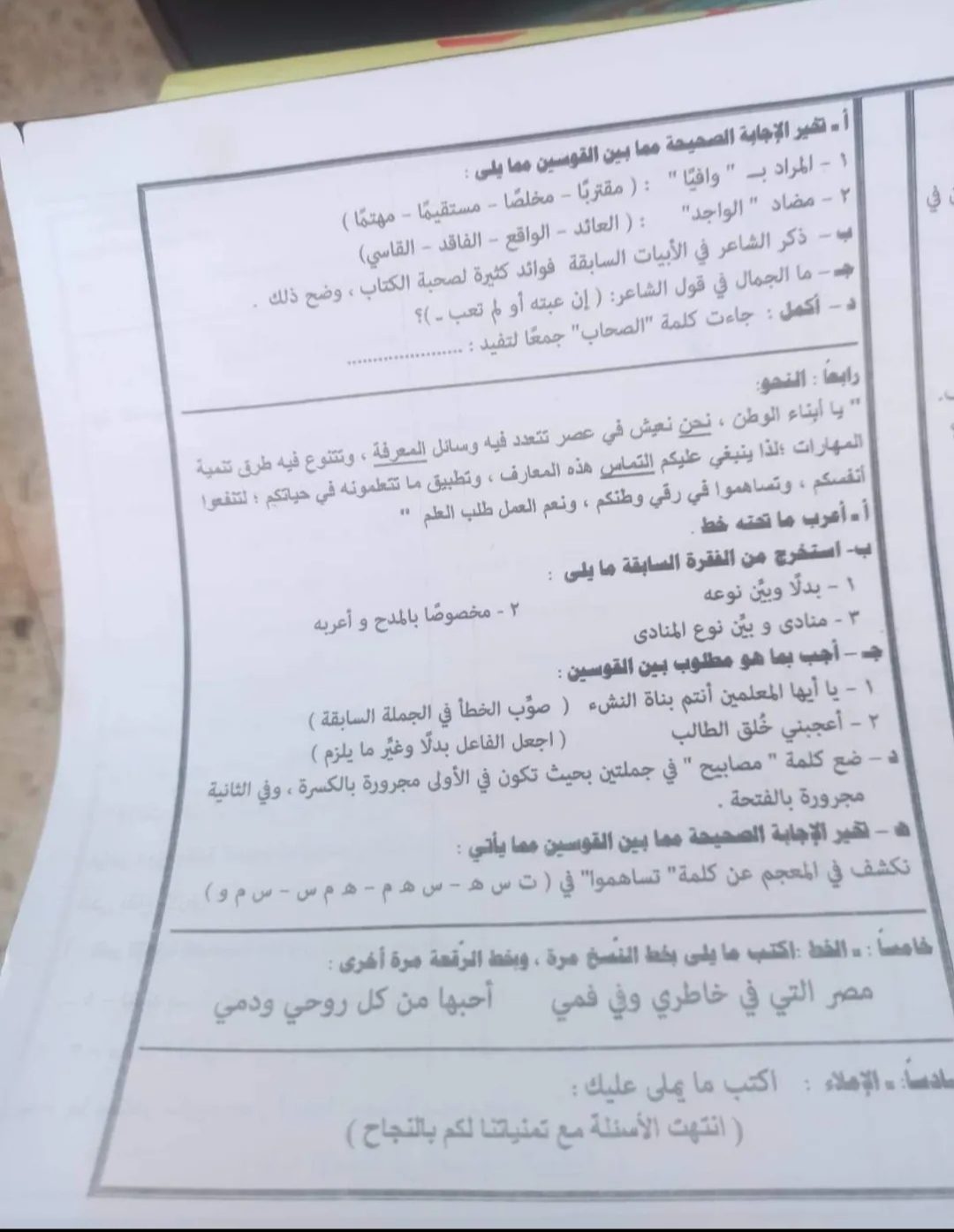 امتحان اللغة العربية محافظة القاهرة الصف الثالث الاعدادي الترم الاول 2023