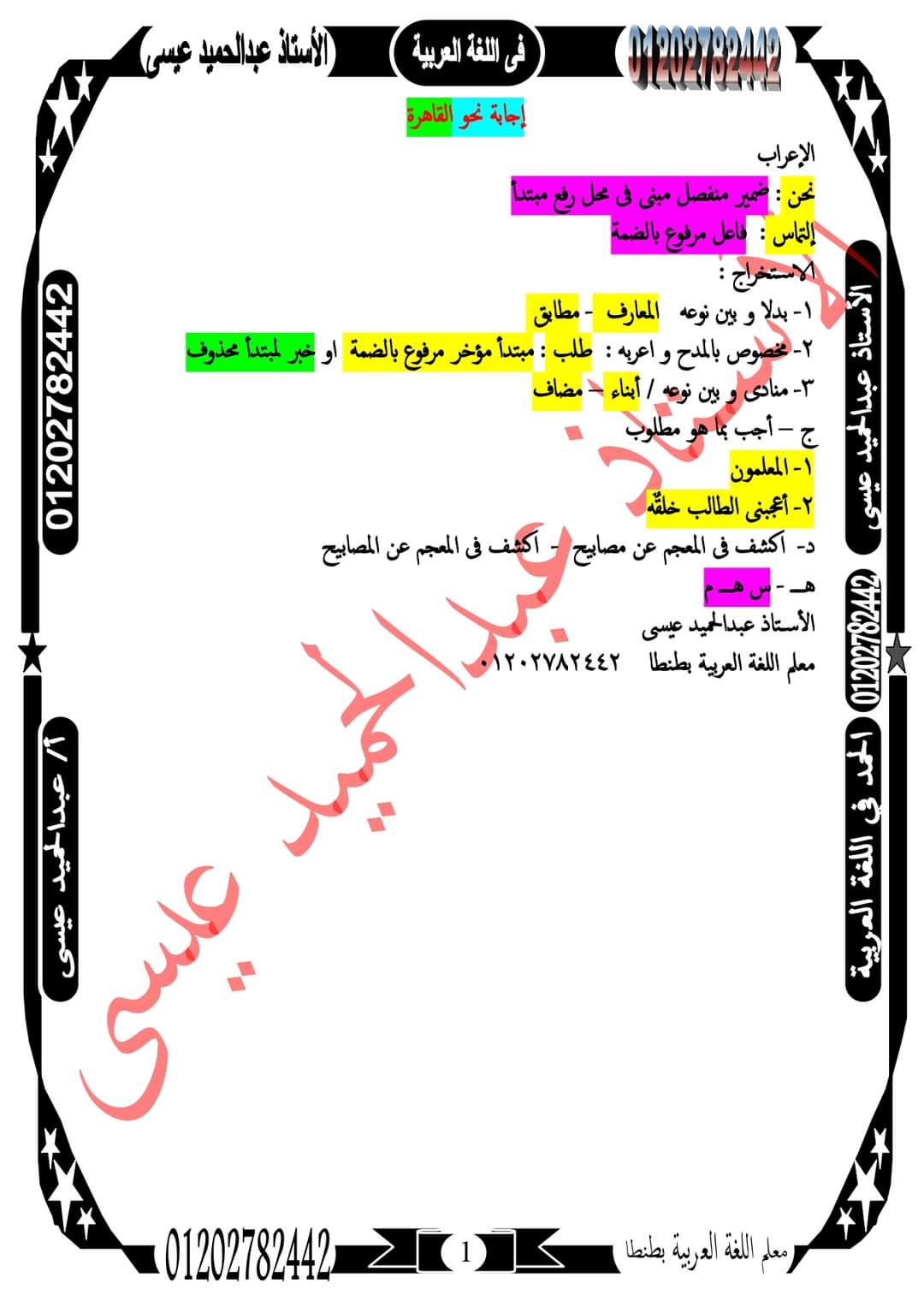 اجابة النحو محافظة القاهرة لمستر عبد الحميد عيسى