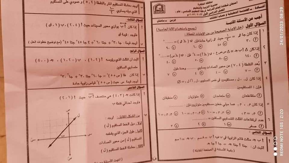 تحميل امتحان الهندسة محافظة القاهرة الصف الثالث الاعدادي الترم الاول 2023